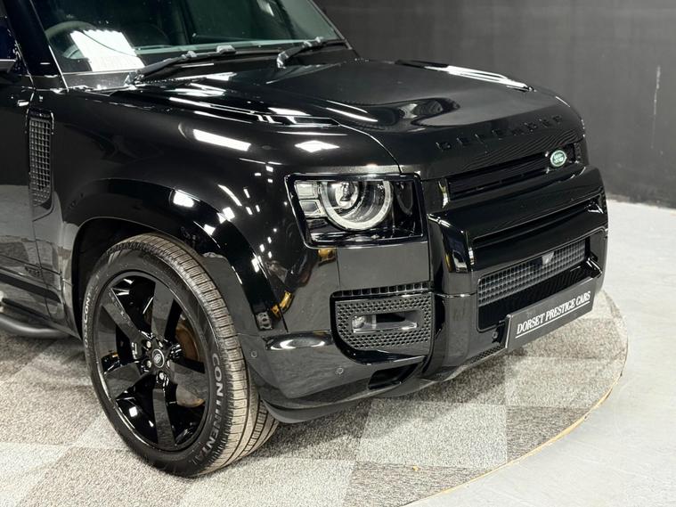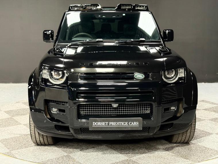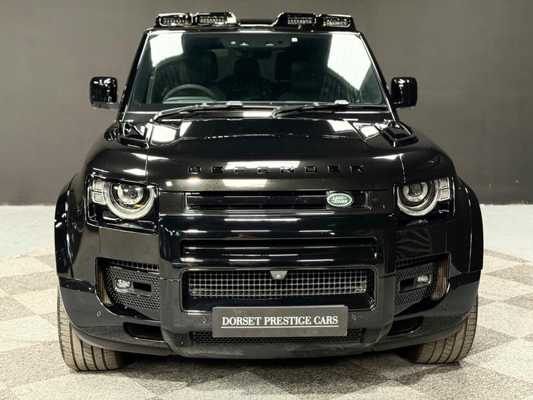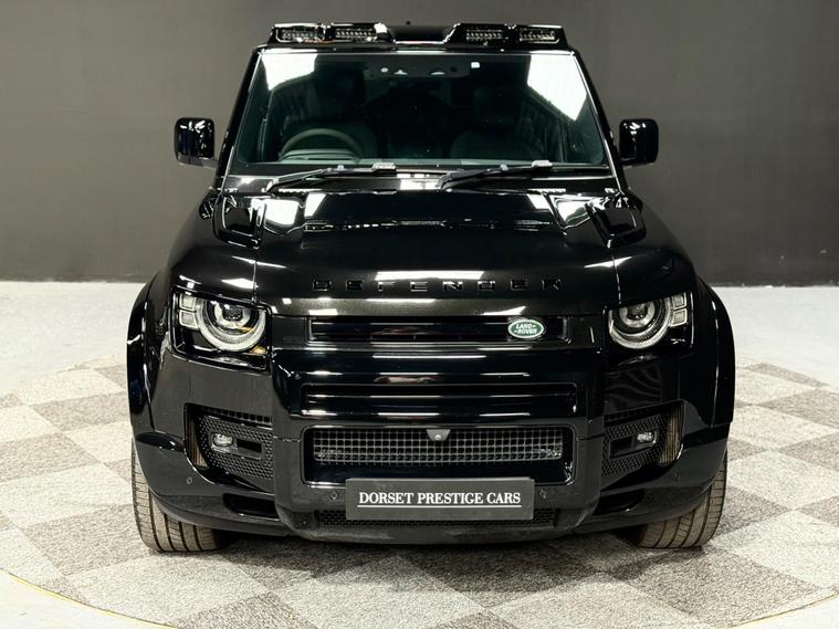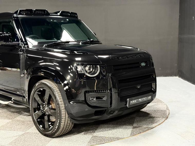 Dorset Prestige Cars are proud to present this stunning Land Rover Defender 90 5.0 P525 V8 Auto 4WD finished in Santorini Black with 22 inch black gloss alloys, electric deployable towbar, sidesteps, black pack, privacy pack, black callipers, panoramic glass sliding roof, 360° cameras, quadruple exhaust system, Alcantara heated steering wheel, heads up display, climate Seats, centre fridge, reverse camera, Apple CarPlay, satellite navigation, low traction launch, Wade censoring, android auto, digital dual climate control, Extras's that we have done include LED Lightbar, Rear Spoiler, Wheel Cover Bonnet Vents and we have just ordered mud flaps!Service History: Land Rover Main Dealer 24/03/2023 @ 19985 miles, Land Rover Main Dealer 27/04/2024 @ 35875 miles, Land Rover Main Dealer 08/11/2024 @ 46819 miles. Will be having a service at main dealer once deposited!!Nationwide Delivery Trailered or Driven you Choose, 6 Months Warranty+ Extended warranties available 12 Months AA Breakdown....This vehicle comes with 6 months Warranty for full peace of mind (up to 36 month extension available), 3 or 5 year ceramic coating available, train station collection service, nationwide delivery available on all vehicles. Part Exchange welcome. Open Monday to Saturday ***Viewing By Appointment Only*** All Major Credit and Debit Cards Accepted. Please visit our website for more information on our services and to view our other vehicles currently in stock. Secure this vehicle today for £500 deposit T&C’s Apply! All our vehicles are HPI clear and have been through our workshop for a full health check for peace of mind. See our 5***** reviews , Buy with confidence through us. Find us on Facebook Instagram and YouTube! View our full range of cars on our website and Autotrader profile..