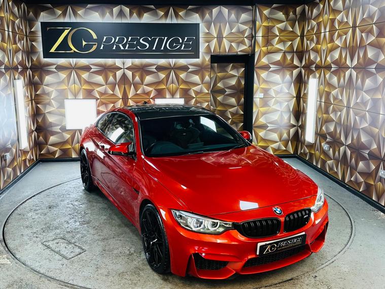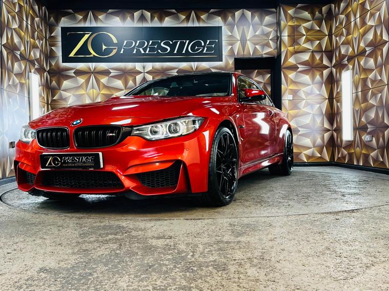 Buy with confidence at ZG Prestige. We are Highly Rated by Auto Trader, recognised as one of the Top 5 Car Dealerships in the UK by CarDealer, and proud to be AA Approved, FCA Regulated, and part of The Motor Ombudsman. With Excellent ratings across Google, eBay, Motors, CarGurus, and PistonHeads, we deliver a trusted service from the town’s largest indoor prestige showroom. Featured Vehicle: BMW M4 3.0 BiTurbo Competition DCT Euro 6 (s/s) 2dr in Sakhir Orange with Black Interior. Supplied with 2 Keys, Comprehensive Service History. Last Service done 28/09/2025 and MOT until 28/09/2026. Excellent condition both inside and out. Our detailed inspection will include replacing any worn wear and tear items like Tyres and Brakes. Some of the Great Specification includes Harmon Kardon Loudspeaker System, Black Merino Leather and Front Heated Seats. When you buy from ZG Prestige, on this vehicle you will receive a FREE 16-Months Premium Warranty with nationwide coverage, no limit on claims, direct payment to the repairing garage, and protection against mechanical and electrical faults. You can extend the warranty for up to 36 months. Every car also includes 12 months AA Breakdown Cover, a clear Experian HPI report, and a 120+ point pre-delivery inspection including a full computer scan report. We offer nationwide delivery, flexible low-rate finance (PCP & HP) with 0% deposit, unbeatable part-exchange prices, and a 14-day money-back guarantee for complete peace of mind. Virtual appointments are available via phone, WhatsApp, or video call—buy from home, hassle-free. Reserve today for just £99 (Completely refundable). Contact us 24/7 on WhatsApp at 01204219868 or visit dealer's website