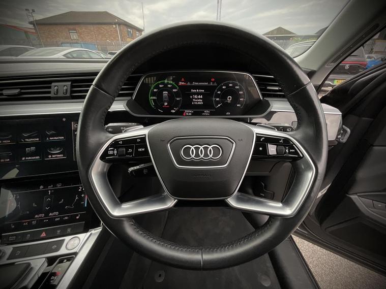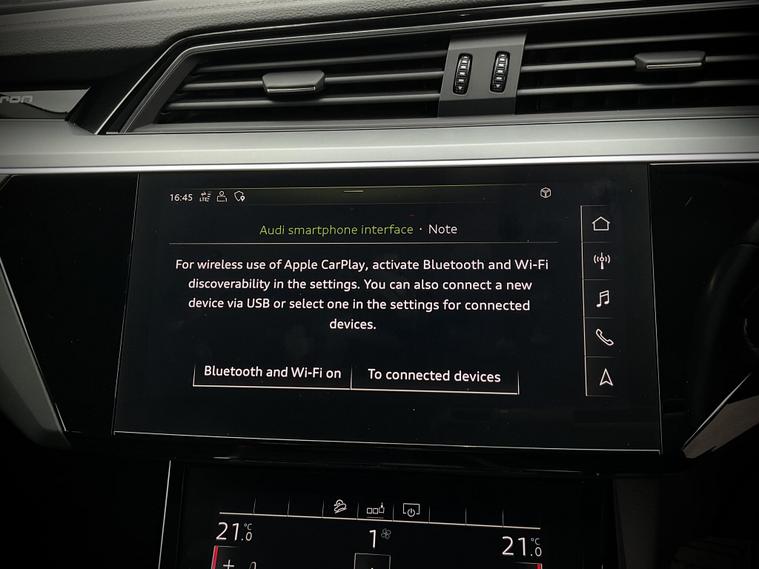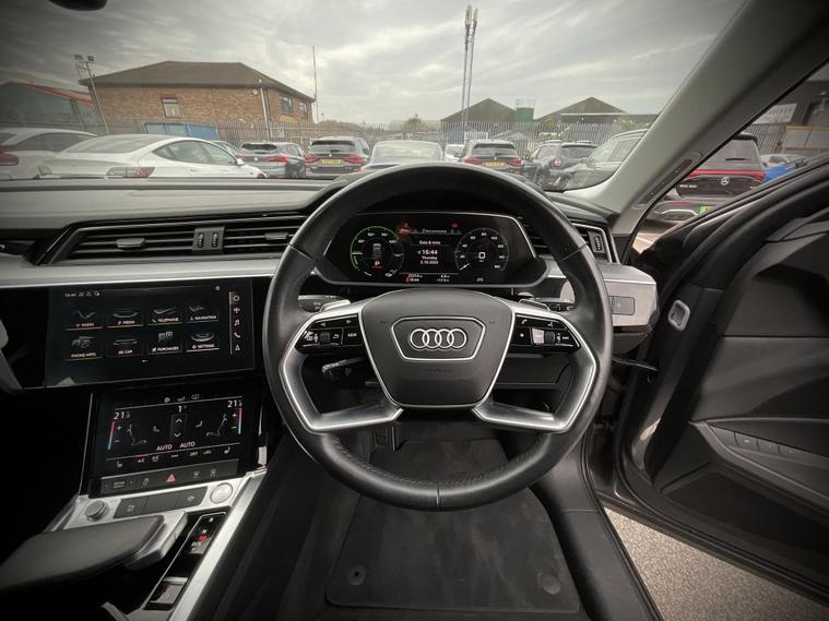 With only 23309 miles on the clock, this 2020 Audi e-tron is a rare find. As an all-electric, four-wheel drive vehicle in the Technik trim, this e-tron combines Audi's renowned luxury with modern electric technology. The e-tron boasts a 71 kWh battery, offering a maximum range of 194 miles when new. Charging is convenient, with a full charge achievable in approximately 9 hours 10 minutes using a 7kW home charger. For those needing a quicker top-up, the e-tron can charge from empty to 80% in just 40 minutes at the fastest public charging points. The large boot space is a real plus, making this car more practical than other similar vehicles..
