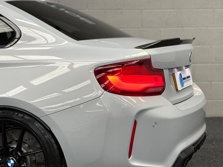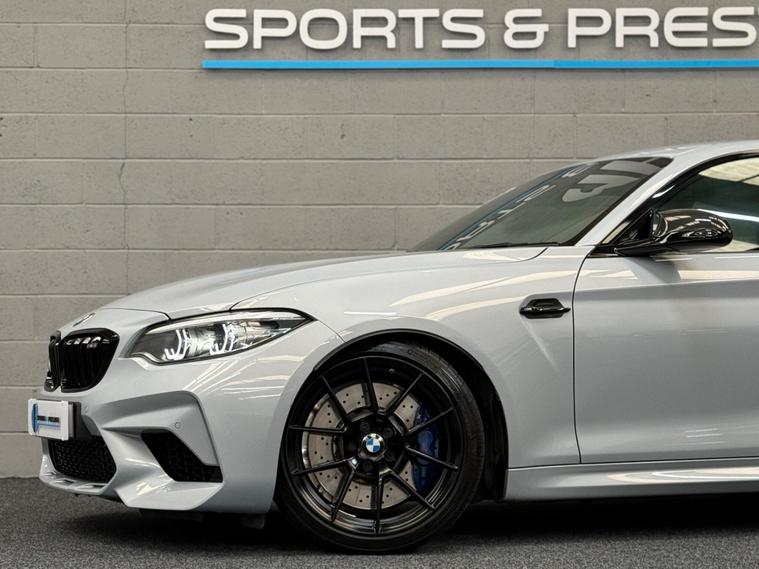 Offered by Motors For Less – AA & Trading Standards Approved Dealer2020 (20) BMW M2 BiTurbo Competition Auto – Hockenheim Silver21, 500 Miles | 1 Owner | M2 Plus & Comfort Pack | Full HistoryRegistration: Y6 MFLMFL Sports & Prestige are delighted to offer this rare and immaculate BMW M2 Competition, finished in Hockenheim Silver with black Dakota leather interior. Just one private owner from new, covered only 21, 750 miles and backed by a full BMW/Specialist service history with 4 oil services completed, including the running-in and major service with spark plugs twice. Ceramic coated three times, last done 4 months ago, this example is in superb condition throughout and ready for its next keeper.=================================Full Service History6 services completed including running-in and major service with plugs. Full/major service inc plugs @ 21717 miles.21, 500 miles |Only  1 owner plus supplying dealerFresh MOT | 2 x keysFactory Spec IncludesGenuine 763M CS Alloys Wheels in Satin BlackM2 Plus Pack – Adaptive LED Headlights, Premium SoundM2 Comfort Pack – Heated & Memory Seats, Keyless Entry, Rear-View Camera, Wireless ChargingFull Screen Apple CarPlayBluetooth Handsfree & Audio with USB InterfaceBMW Icon Adaptive LED HeadlightsDual Zone Climate ControlCruise ControlEnhancements & ExtrasGenuine 763M Alloys in Satin BlackEibach Springs and SpacersCarbon/Alcantara Interior Trims & Carbon Exterior DetailsPandora Alarm SystemMOD Stock Exhaust Mod with OEM SystemM2 CS Flash UpgradeCeramic Coating – Last applied 4 months ago=================================PerformanceNever mapped404BHP | 3.0L BiTurbo Petrol=================================Why Buy From UsAA and Trading Standards Approved Dealer with over 450 five star reviewsBuy Your Next Car With ConfidenceLow Rate Finance Available From 8.9% APRApply at dealer's website arrange a viewing appointment only please call 01274914061FULLY REFUNDABLE DEPOSIT SECURES ANY VEHICLE (Based upon viewing).