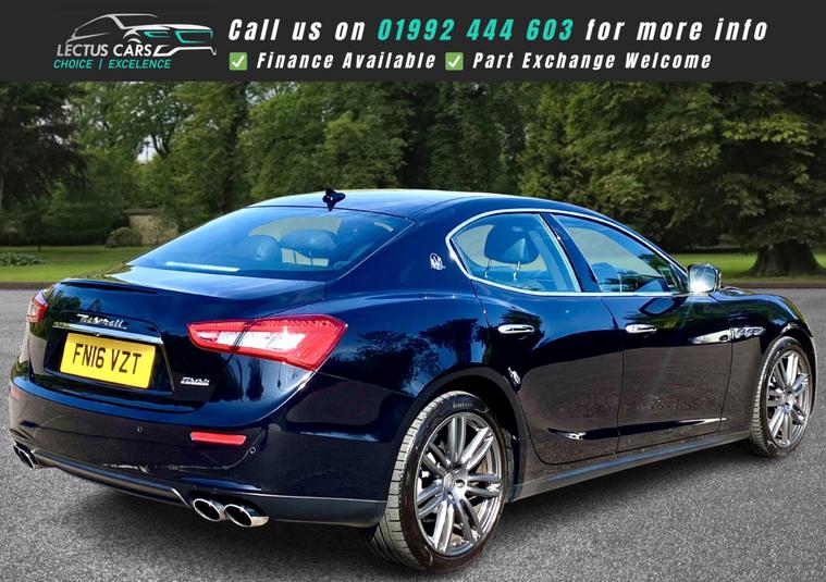 Finished in Nero Ribelle Metallic (Black) with a full black leather upholstery. Complimented by a Full-Service history, with the last being at 46, 901 miles. The vehicle is in excellent condition throughout and has an impressive specification including18in Alfieri Design Alloy Wheels finished in Gun Metal Grey. 7in Multifunction Digital Display Cluster with On-Board Computer and Driver Info. Active Cruise Control. Three-Spoke Steering Wheel and Gear Knob in Poltrona Frau Coloured Leather. Twin Dual Pipe Exhaust System in Chrome-Plated Stainless Steel. Satellite Navigation. Maserati Touch Control Unit Including 8.4in Touch Screen Display. Dual Zone Automatic Climate Control with 13 Air Outlets with 4 to the Rear. Multi-Function Steering Wheel. Bluetooth Connectivity. Dashboard Mounted Maserati Design Clock. Front and Rear Parking Sensors. 6 Ways Electrically Adjustable Front Seats. Sport Button for Sport Mode Set-up. NavTrak Vehicle Tracking System with Automatic Driver Recognition and Remote Inhibition. Full LED Taillights and Third Stop Light Integrated Into the Rear Window. Lightweight Boot Lid Construction with Keyless Opening and Remote Key Unlocking. Standard Audio System with 8 Speakers. Maserati Active Exhaust Sound SystemSee the video in the advert or use this link: https://youtu.be/Q8_-i_q_uXc?si=RNH9Hck_o6OFy-2a0% Deposit when financing through us.DELIVERY AVAILABLE. The Car Comes With A 6 Month Premium Nationwide Parts And Labour Warranty Finance Available From 10.9 % Apr All Inspections Welcome AA/RAC Px Welcome Viewing By Appointment Only Please Call John On 01992692105 Or 01992692105.