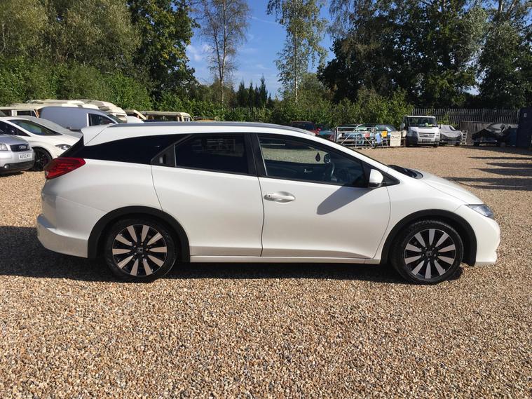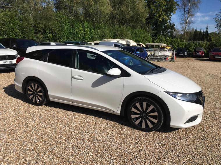Here we have a lovely Honda Civic 1.8 petrol SR estate with a full service history and is fully HPI clear. Has just passed a new MOT with no advisories. The service history is all HONDA main dealer apart from the last service which was carried out by us. Two private owners from new and comes well equipped with satellite navigation, rear reverse camera, front and rear parking sensors, full black leather, DAB Radio, ice cold air conditioning, six speed gearbox, multiple airbags, remote central locking with two functional remote locking keys, heated seats, electric folding mirrors, front and rear electric windows, front and rear armrests, multi functional steering wheel, leather bound steering wheel, 17 inch alloy wheels, ISOFIX plus much more! Finished in stunning metallic white. FOR ANY MORE DETAILS PLEASE CALL STEVE ON 01252270257 MEADOW MOTOR COMPANY FARNHAM..