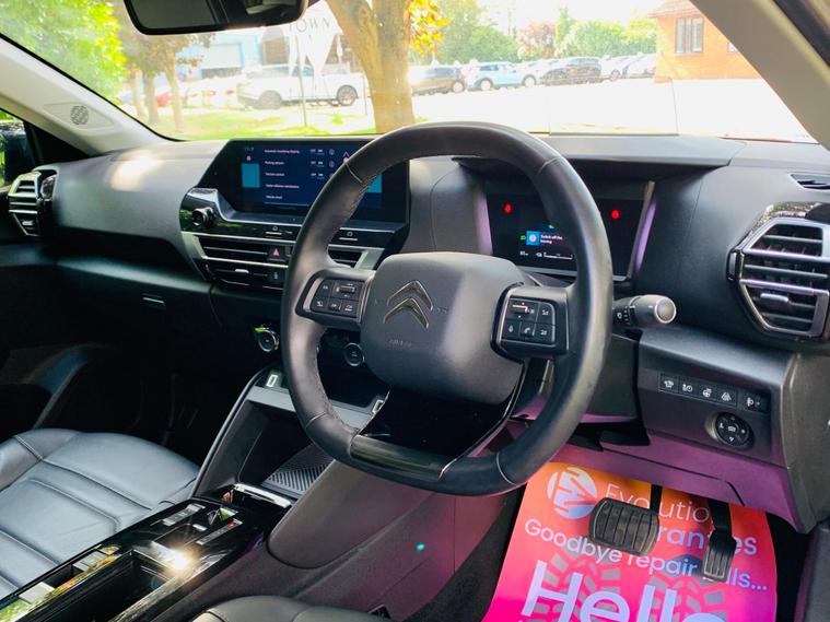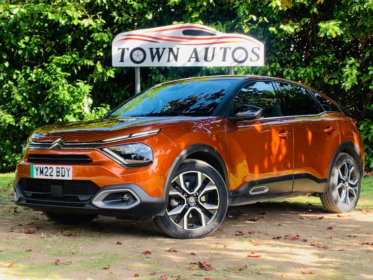 Mot 22/06/2026, 1 Owner since new, 03 service stamps in book, Spare key, This 2022 Citroen e C4 Shine Plus presents an exceptional ownership proposition with its remarkably low mileage of just 12255 miles, a clear vehicle history check, and a full 50 kWh battery offering a maximum range of 219 miles when new. This electric hatchback boasts a full charging time of 7 hours 30 minutes at home using a 7kW charger, and can achieve an 80% charge in a swift 30 minutes at a rapid public charging station. The Shine Plus trim level comes equipped with advanced features designed for convenience and safety, including LED headlights for enhanced visibility, a Head Up Display to keep your eyes on the road, and automatic dual zone air conditioning for personalised comfort.Further enhancing the driving experience are the practical additions of wireless smartphone charging and active blind spot detection, ensuring you stay connected and protected. The Citroen e C4 also offers a generous boot space, making it a practical choice for everyday use and longer journeys. These highlights demonstrate how this particular e C4 Shine Plus stands out, offering a blend of cutting edge technology, impressive electric range, and thoughtful design for a superior driving experience..