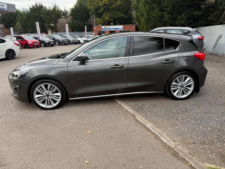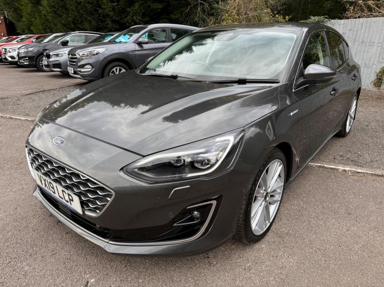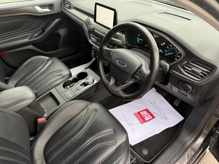 This 2019 Ford Focus Vignale T is presented with a full dealership service history, having been serviced most recently on 11 March 2025 at 69, 489 miles, and has had only one owner from new. This Euro 6 compliant model boasts a 1.5 litre petrol engine and features a heated steering wheel, Ford Key Free System for keyless entry and start, a Head Up Display, a rear wide view camera, and front and rear parking sensors.The Focus Vignale T offers an impressive 0-62mph acceleration time of just 8.4 seconds, demonstrating its strong performance. These features collectively indicate a well maintained and highly specified vehicle, offering a superior driving experience compared to other models in its class..
