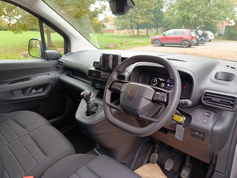 This 2024 Citroen Berlingo presents an exceptional ownership proposition with a mere 7339 miles on the clock and a single owner from new. As a 1.5 BlueHDi 1000 Enterprise M SWB Euro 6 model, this van is equipped with a fuel efficient 1.5 litre diesel engine. The Enterprise M trim level ensures a practical and comfortable driving experience, featuring rear parking sensors for easier manoeuvring and automatic illumination of headlights for enhanced visibility. Stay connected and entertained with the integrated smartphone station, offering Bluetooth handsfree and a USB socket, while air conditioning provides a pleasant cabin environment.The low mileage for its age, coupled with its Euro 6 emission class, indicates this Citroen Berlingo is a conscientious choice. Its impressive fuel economy of 54 mpg highlights its cost effectiveness for daily use, and its low CO2 emissions further contribute to its efficient performance compared to similar vehicles. This combination of low usage, single ownership, and excellent running costs makes this Berlingo a standout option for any discerning buyer..