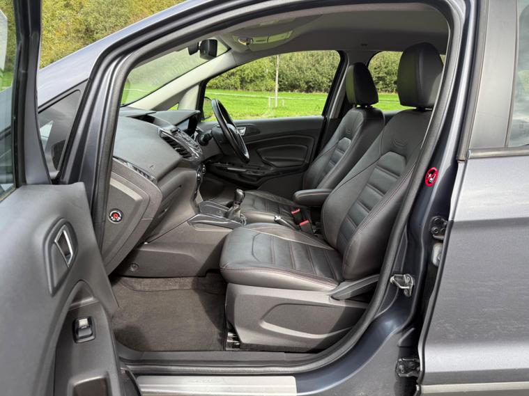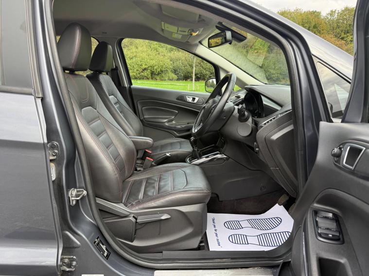Discover this 2015 Ford EcoSport T Titanium, a well presented vehicle ready for its next owner. This popular compact SUV is equipped with a responsive 1.0 litre petrol engine and benefits from the desirable Titanium X Pack, featuring stylish Torina leather upholstery in Charcoal Black. For your comfort, it includes Electronic Automatic Temperature Control for effortless climate management and convenient Central Locking with Keyless Entry. Mot June 2026, spare key, hpi clear, comes with 3 months nationwide warranty and 12 months AA breakdown service, we accept any vehicle in part exchange nationwide delivery service available, This Ford EcoSport stands out with its impressive fuel economy, achieving up to 53 miles per gallon, which indicates it is more economical than many similar vehicles. Furthermore, its low insurance group rating suggests that running costs will be kept down, and its low CO2 emissions highlight its environmental consideration compared to other cars in its class. Buy from a reputable dealer highly recommended by Autotrader. Viewing by appointment open seven days a week usual Dealer facilities..