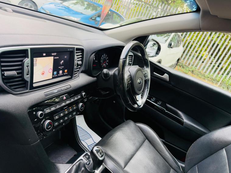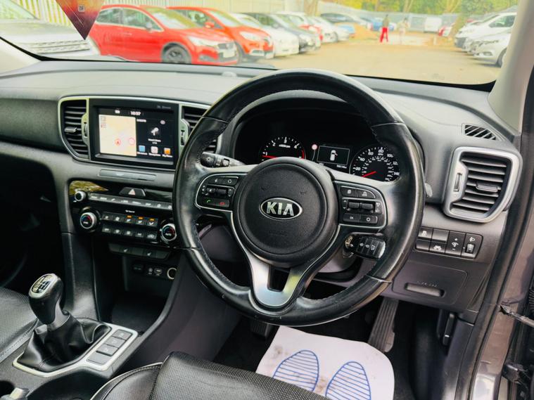 SILVER, SERVICE HISTORY, FINANCE AVAILABLE, NAVIGATION SYSTEM, PARKING CAMERA, SUN OOF AND PANORAMIC ROOF, LEATHER HEATED SEATS, ONLY ONE FORMER KEEPER, PRIVACY GLASS, START/STOP, CRUISE CONTROL, ULEZ COMPLIANT SUPERB DRIVE, VERY ECONOMICAL, ALLOY WHEELS, CLIMATE CONTROL, VERY WELL LOOKED AFTER, VERY CLEAN IN AND OUT.This 2017 Kia Sportage CRDi 3 is a superb example, having been owned by just one person from new and boasting a clear vehicle history check. It features a responsive 1.7 litre diesel engine, meeting Euro 6 emissions standards, and will be supplied with a full 12 months MOT for your peace of mind. Inside, you'll find a comfortable cabin equipped with dual automatic air conditioning with an ioniser, ensuring a pleasant environment for all occupants. Entertainment is provided by a JBL sound system, and connectivity is made easy with Bluetooth for music streaming. Parking is also made simpler with rear parking sensors and a reversing camera system.This Sportage offers excellent running costs, highlighted by an impressive fuel economy of 61 miles per gallon, placing it in a low insurance group which further contributes to its affordability. You'll also appreciate the generous boot space, perfect for shopping trips or family holidays. Its low CO2 emissions are also a key benefit, indicating it is a more environmentally conscious choice compared to many similar vehicles..