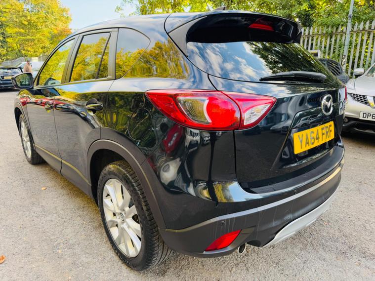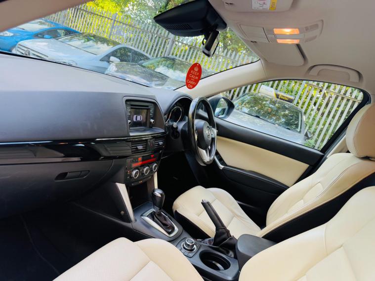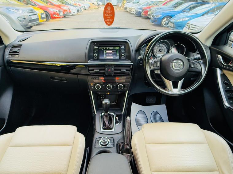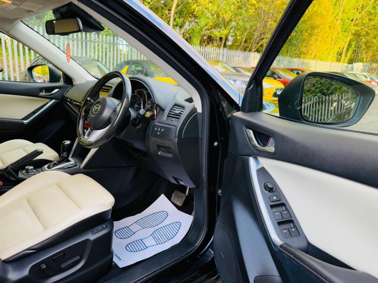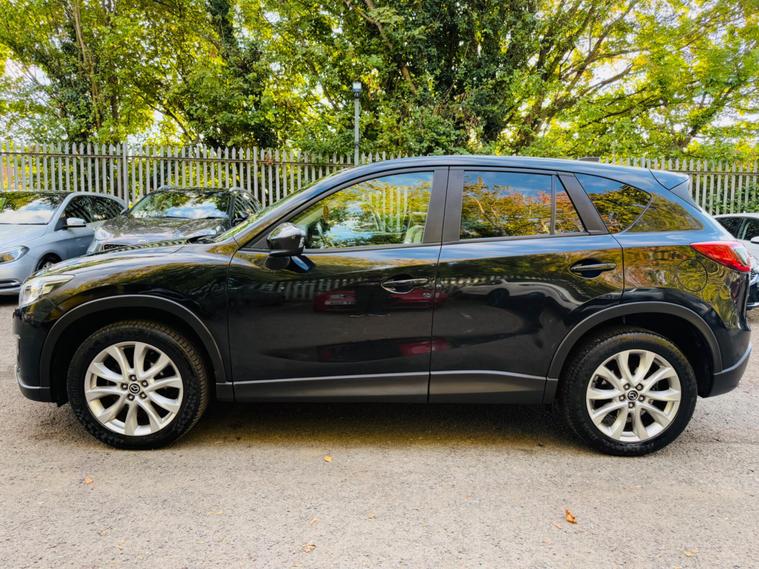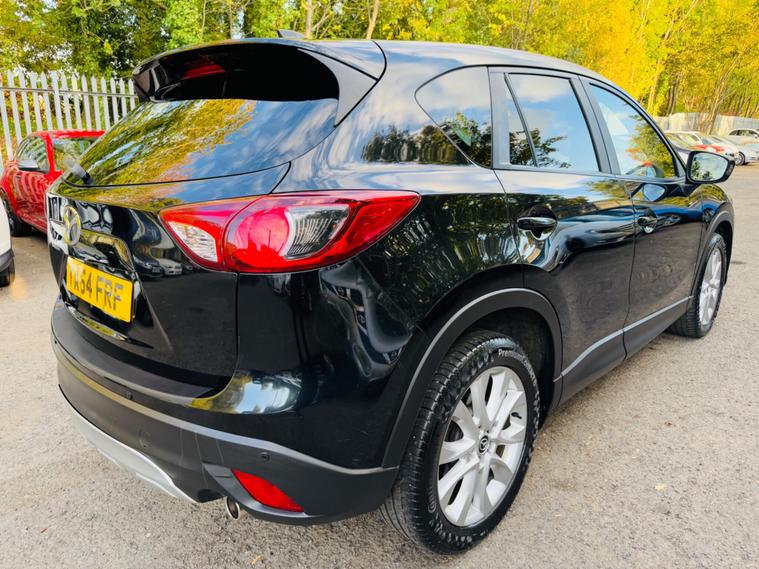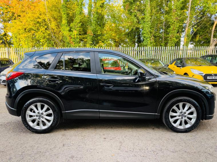 BLACK, FINANCE AVAILABLE, NAVIGATION SYSTEM, PARKING CAMERA, LEATHER AND HEATED SEATS, ONLY TWO FORMER KEEPERS, PRIVACY GLASS, START/STOP, CRUISE CONTROL, ULEZ COMPLIANT SUPERB DRIVE, VERY ECONOMICAL, ALLOY WHEELS, CLIMATE CONTROL, VERY WELL LOOKED AFTER, VERY CLEAN IN AND OUT.This 2014 Mazda CX-5 SKYACTIV-D Sport Nav is a well maintained example with a clear vehicle history check and only two previous owners. It features a powerful 2.2 litre diesel engine paired with a four wheel drive system, ensuring capable performance in various conditions. As a Euro 6 compliant vehicle, it meets modern emission standards. Inside, you'll find a comfortable and well equipped cabin, including front heated seats, a driver's seat with memory function, and dusk sensing automatic headlights for convenience. The premium BOSE Centrepoint surround sound system with nine speakers and a 6CD changer offers an exceptional audio experience, while rear parking sensors with parking assistance make manoeuvring easier.This Sport Nav model stands out with its generous boot space, offering ample room for luggage or shopping. Its low insurance group rating also indicates that running costs are likely to be more affordable compared to similar vehicles. These factors, combined with its desirable features and careful ownership history, highlight how this Mazda CX-5 offers a compelling package for those seeking a practical and enjoyable SUV..