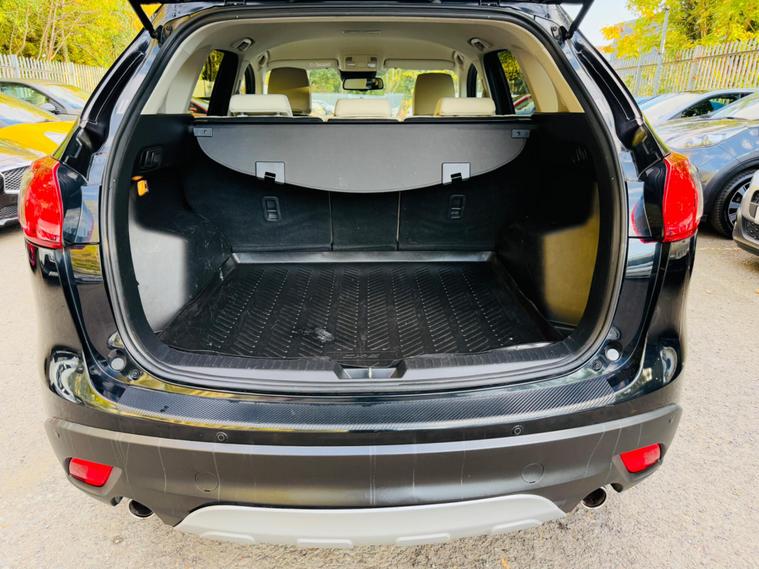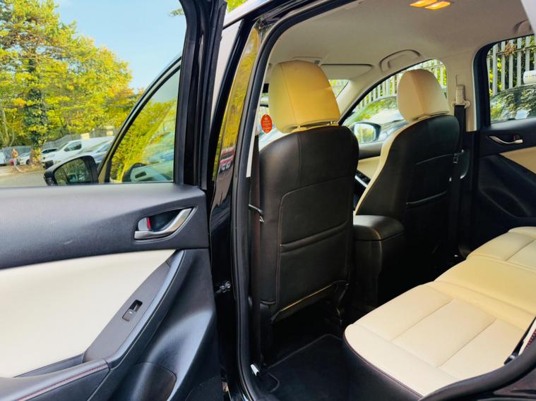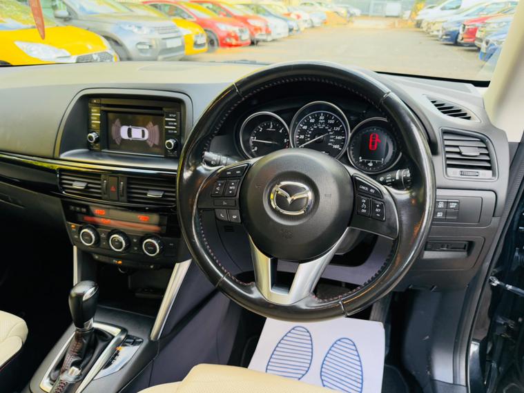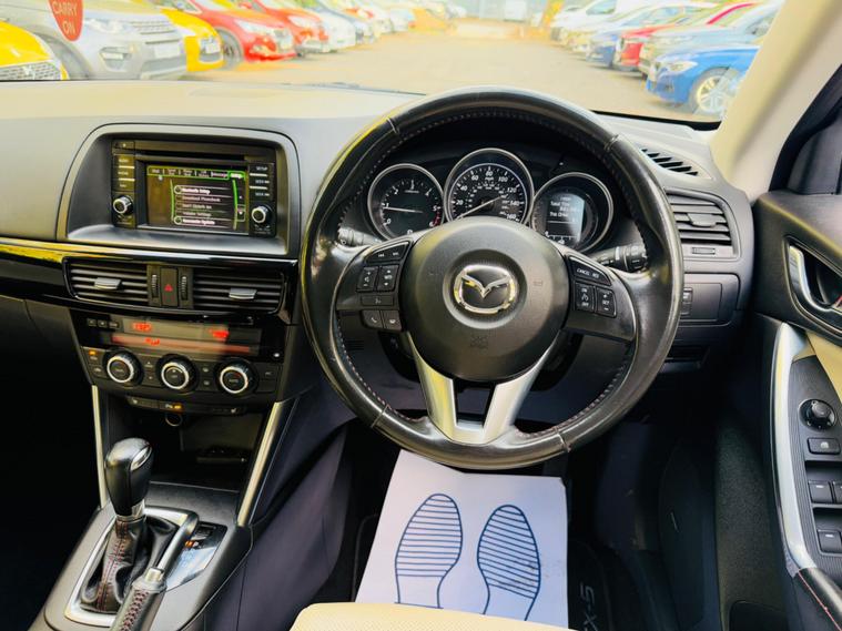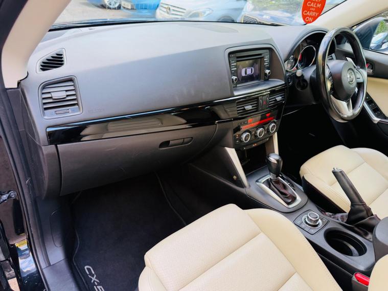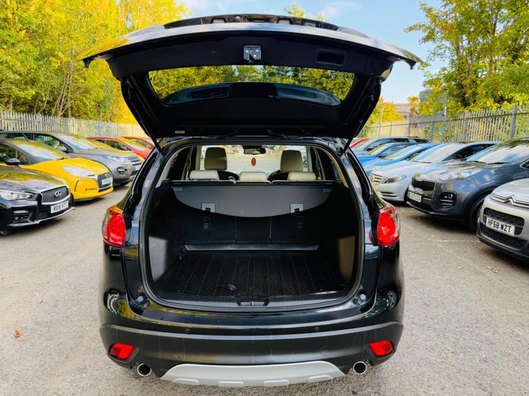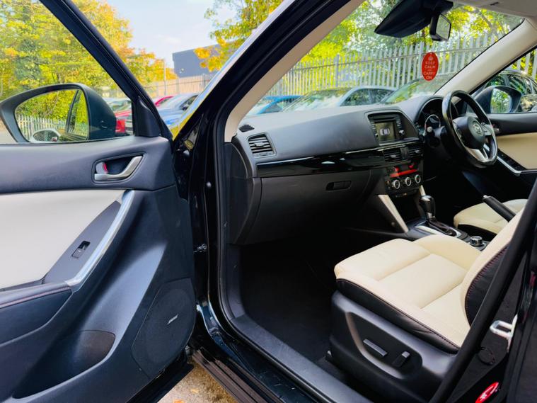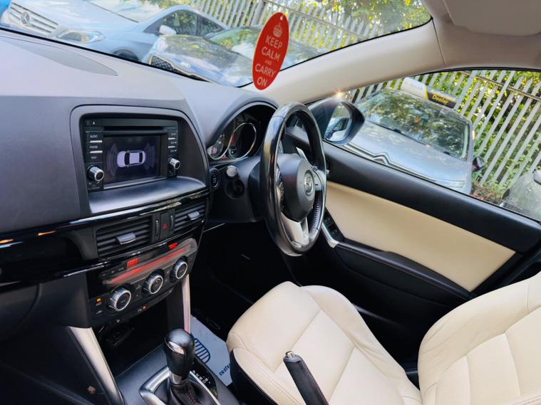 BLACK, FINANCE AVAILABLE, NAVIGATION SYSTEM, PARKING CAMERA, LEATHER AND HEATED SEATS, ONLY TWO FORMER KEEPERS, PRIVACY GLASS, START/STOP, CRUISE CONTROL, ULEZ COMPLIANT SUPERB DRIVE, VERY ECONOMICAL, ALLOY WHEELS, CLIMATE CONTROL, VERY WELL LOOKED AFTER, VERY CLEAN IN AND OUT.This 2014 Mazda CX-5 SKYACTIV-D Sport Nav is a well maintained example with a clear vehicle history check and only two previous owners. It features a powerful 2.2 litre diesel engine paired with a four wheel drive system, ensuring capable performance in various conditions. As a Euro 6 compliant vehicle, it meets modern emission standards. Inside, you'll find a comfortable and well equipped cabin, including front heated seats, a driver's seat with memory function, and dusk sensing automatic headlights for convenience. The premium BOSE Centrepoint surround sound system with nine speakers and a 6CD changer offers an exceptional audio experience, while rear parking sensors with parking assistance make manoeuvring easier.This Sport Nav model stands out with its generous boot space, offering ample room for luggage or shopping. Its low insurance group rating also indicates that running costs are likely to be more affordable compared to similar vehicles. These factors, combined with its desirable features and careful ownership history, highlight how this Mazda CX-5 offers a compelling package for those seeking a practical and enjoyable SUV..