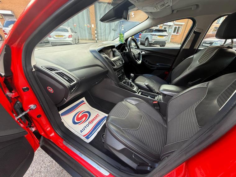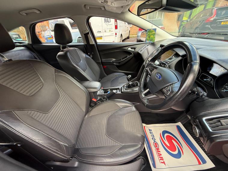 This 2016 Ford Focus Titanium X presents a superb ownership proposition, having been cared for by only two owners and boasting a clear vehicle history check. Under the bonnet, you'll find a responsive 1.5L petrol engine, meeting Euro 6 emissions standards. This well appointed Focus Titanium X comes equipped with a Premium Ford SYNC2 DAB Navigation System, an Appearance Pack 2, and dual zone electronic automatic air conditioning for your comfort. Further enhancing its appeal are front parking sensors for easier manoeuvring and powerful Bi-Xenon headlights for improved visibility.Experience the impressive acceleration of this Ford Focus, reaching 0-62mph in a brisk 8.6 seconds, a figure that highlights its spirited performance compared to many similar vehicles. You'll also appreciate the generous boot space, offering ample room for shopping, luggage, or sports equipment. The combination of its efficient engine, advanced technology, and practical features makes this Focus Titanium X a compelling choice for everyday driving..