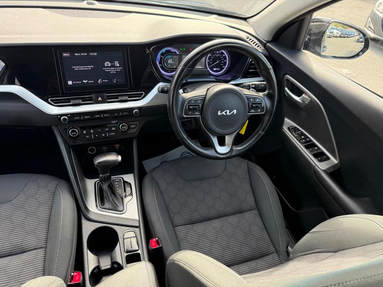 This 2022 Kia Niro GDi 2 is a superb example, having had only one owner since new. It boasts a 1.6 litre petrol hybrid engine, meeting Euro 6 emission standards, and comes equipped with a suite of useful features. Stay connected and entertained with Android Auto and Bluetooth with music streaming, all controllable via voice command. For effortless driving, it includes Adaptive Smart Cruise Control with Stop and Go functionality and automatic headlight control. Manoeuvring is made simpler with the integrated reversing camera system.The Kia Niro GDi 2 offers excellent running costs, highlighted by an impressive fuel economy of 59 miles per gallon. Its low CO2 emissions and low insurance group rating further indicate that this vehicle is more economical to own and run compared to many others in its class. This combination of efficiency, technology, and single owner provenance makes it a very appealing choice..