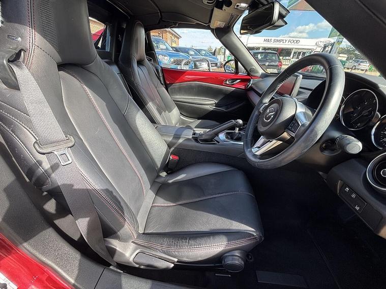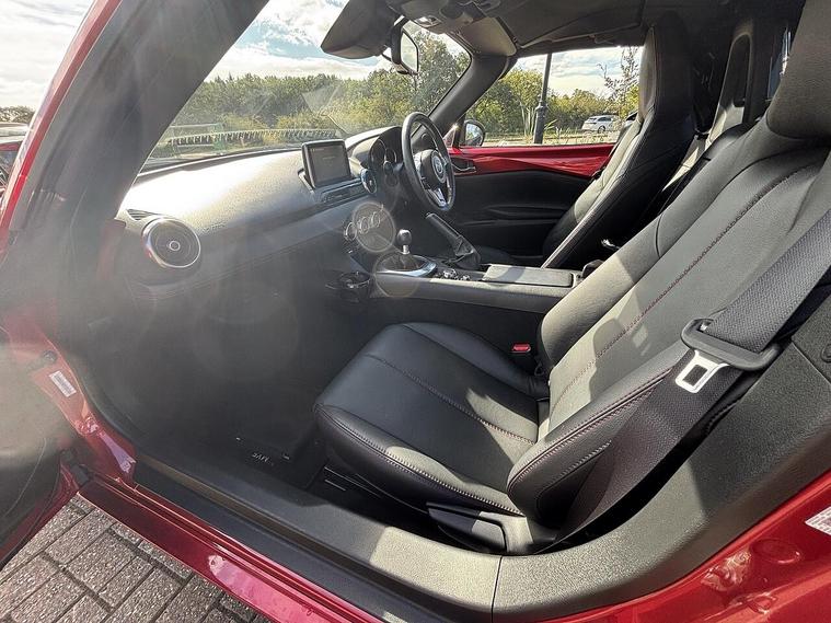 This 2017 Mazda MX-5 RF SKYACTIV-G Sport Nav presents a remarkable opportunity with its exceptionally low mileage of just 30291 miles. As a Euro 6 compliant vehicle, it boasts a 1.5 litre petrol engine and is ready for the road with its MOT valid until January 2026. This Sport Nav model comes equipped with desirable features including climate control air conditioning, LED headlights with automatic levelling, dusk sensing automatic headlights, integrated Bluetooth for seamless connectivity, and heated seats for added comfort.The fuel economy of this MX-5 RF is a standout feature, achieving an impressive 46 miles per gallon, which indicates it is more economical than many similar vehicles. Furthermore, its low CO2 emissions highlight its environmental consideration. This combination of low mileage, excellent fuel efficiency, and a comprehensive set of features makes this Mazda MX-5 RF a compelling choice for those seeking a well maintained and enjoyable driving experience..