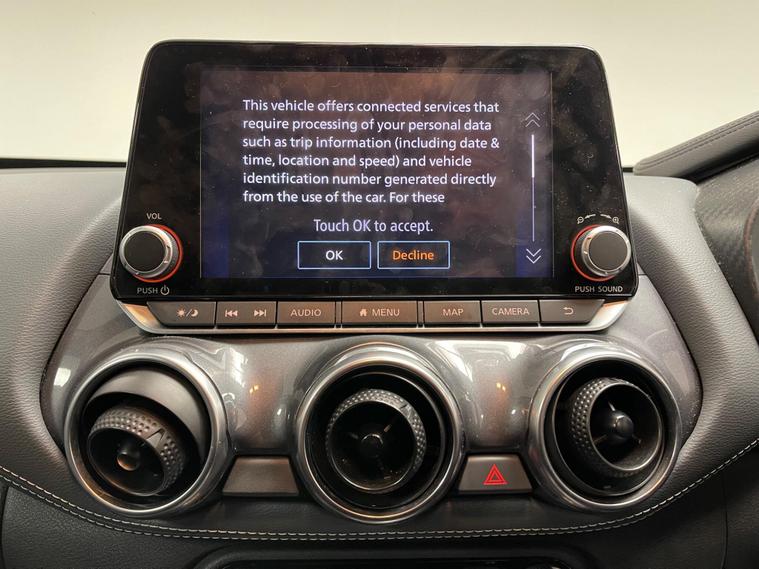 Discover this exceptional 2021 Nissan Juke DIG-T Tekna, boasting incredibly low mileage of just 10256 miles, making it a truly stand out example for its year. This stylish compact SUV is powered by an efficient 1.0L Petrol engine, meeting Euro 6 emissions standards. Experience effortless entry and starting with the Intelligent Key and Start Push Button, while the Tekna trim ensures you're treated to premium features. Illuminate your journey with crisp LED headlights, and stay connected and entertained with seamless Android Auto and Apple CarPlay integration. For an immersive audio experience, the Bose Personal Plus Audio System delivers exceptional sound quality, all while the Comfort Pack, including climate control, ensures a pleasant cabin environment for every drive.This Nissan Juke DIG-T Tekna offers impressive fuel economy, achieving a remarkable 46 mpg, which is a significant advantage over many similar vehicles. Its low CO2 emissions further contribute to its cost effectiveness and environmental consideration. These highlights demonstrate how this Juke provides a superior driving experience, combining efficiency, advanced technology, and comfort in a distinctive package..