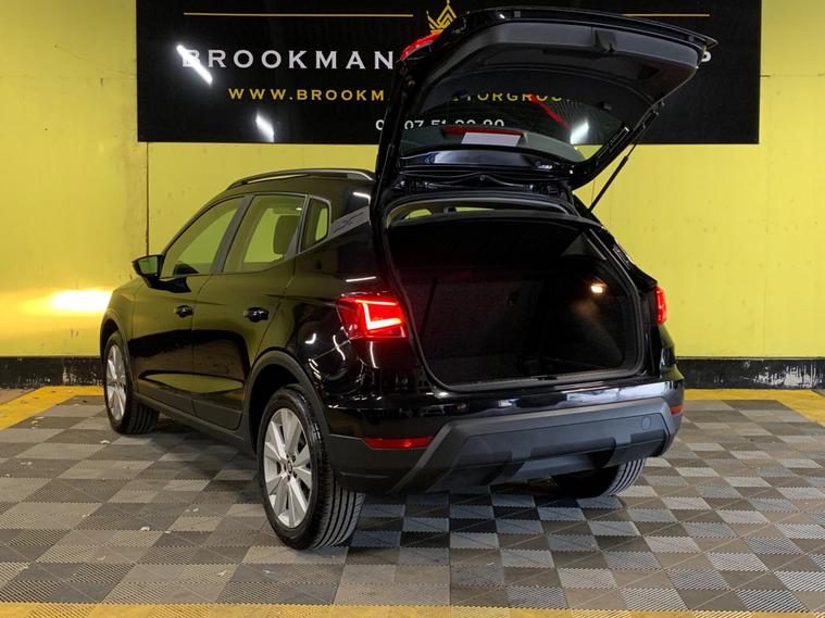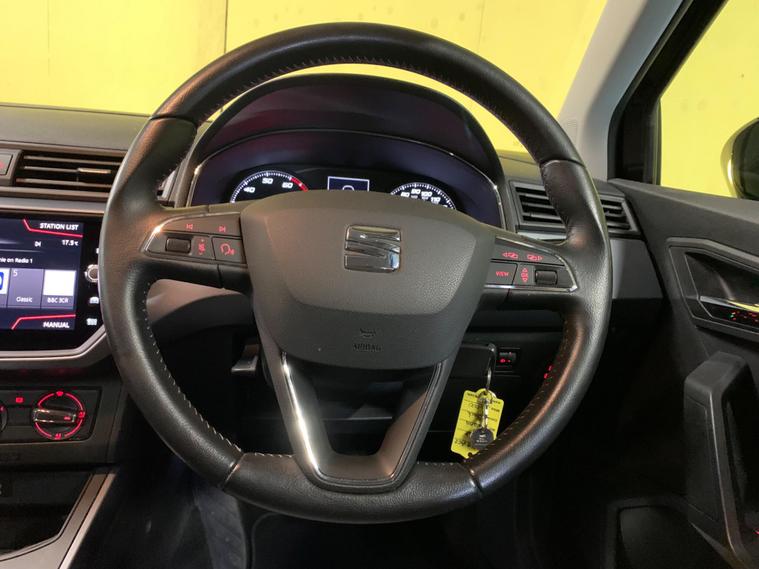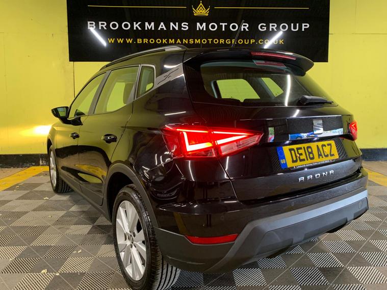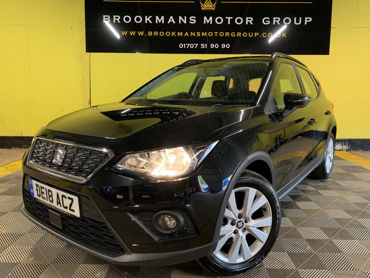 Brookmans Motor Group are pleased to present this great driving and excellent condition SEAT Arona 1.0 TSI SE Technology DSG finished in midnight black paint with contrasting grey cloth interior for comfort which has covered 14k miles from new with 1 former keeper. The SEAT Arona benefits from outstanding service history starting with the main dealer at 1k in 2018, before moving to independent garages at 5k in 2020, 9k in 2022, 12k in 2023, 13k in 2024, and most recently at 14k in 2025. The SEAT Arona comes with a host of features which includes Apple car play, SAT NAV, parking sensors, air conditioning, DAB radio, cruise control, multifunction steering wheel and more..