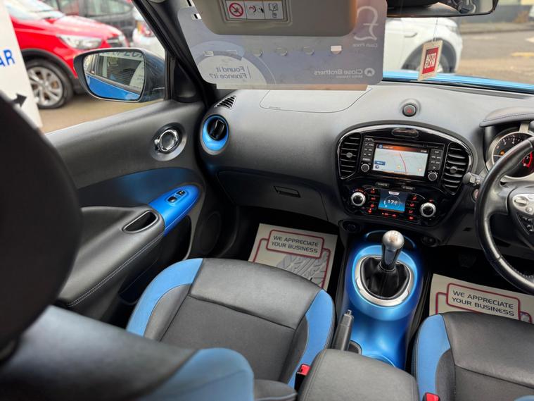 HERE WE HAVE ON SALE THE POPULAR NISSAN JUKE 1.6 BOSE PERSONAL EDITION EURO 6 FINISHED IN METALLIC dealer's website WITH HALF LEATHER SEATS, BOSE PERSONAL SOUND SYSTEM, BLUETOOTH, CRUISE CONTROL WITH SPEED LIMITER, COLOUR REVERSE CAMERA, MULTIFUNCTIONAL STEERING WHEEL, ELECTRIC WINDOWS, ELECTRIC AND HEATED MIRRORS, AUTO CLIMATE CONTROL, NISSAN CONNECT, TYRE PRESSURE MONITORING SYSTEM , ISOFIX ATTACHMENT POINTS, USB, REMOTE CENTRAL LOCKING, X2 KEYS..................ON FORMER KEEPER.............THIS VEHICLE COMES WITH FULL SERVICE HISTORY WITH SERVICES AT 9636 MILES, 29321 MILES, 32925 MILES AND 35205 MILES MEANING THIS VEHICLE HAS BEEN MAINTAINED TO A VERY HIGH STANDARD...................THIS VEHICLE PRESENTS IN EXCELLENT CONDITION THROUGHOUT AND DRIVES LIKEWISE................VIEWING ESSENTIAL..............FINANCE AVAILABLE ON REQUEST..