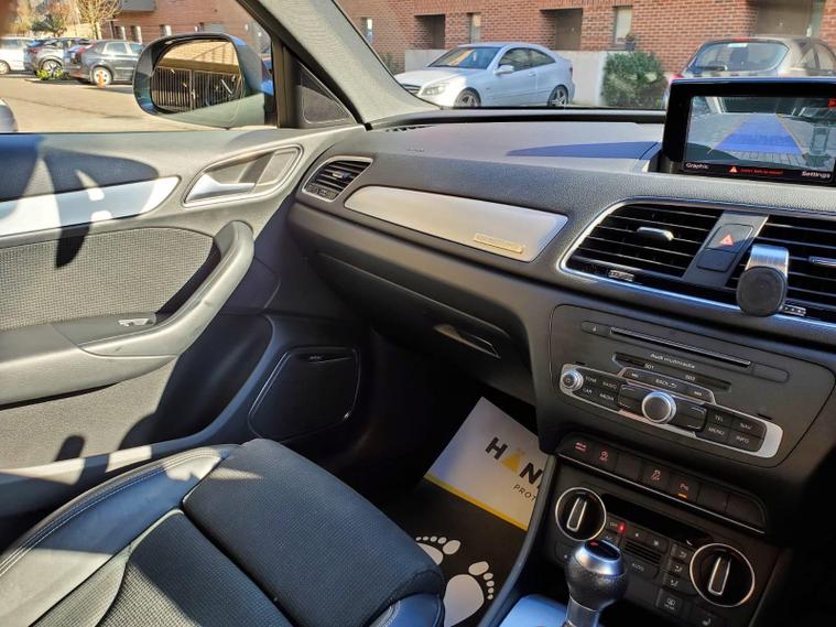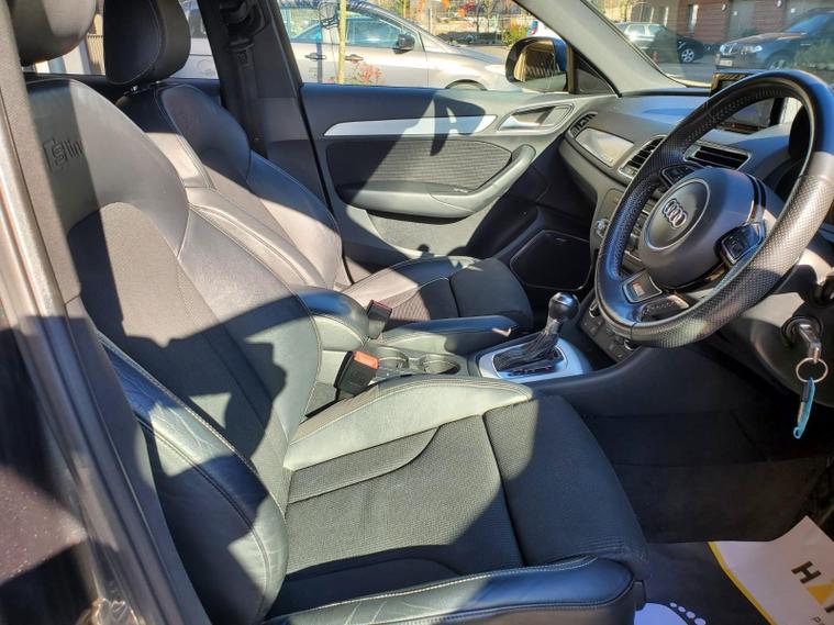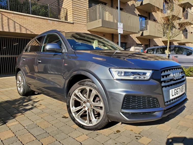 This is an Audi Q3 TFSI S line Edition, a car first registered in 2017. This model comes in an S line Edition trim and is powered by a 2.0-litre petrol engine with four-wheel drive. It boasts a full service history and has had only one owner from new. The vehicle is equipped with several features, including dual-zone electronic climate control, a light and rain sensor with automatic headlights, and a Bluetooth interface. For enhanced visibility, it includes all-weather LED headlights. The Audi Parking System Plus, complete with front and rear parking sensors, makes navigating tight spots easier.With its Euro 6 emission class, this Q3 is kinder to the environment. It can tow up to 2000 kg, offering practicality alongside its other features. The car accelerates from 0-62mph in just 7.6 seconds, demonstrating its superior performance compared to similar vehicles. AMAZING VALUE FOR MONEY Navigate to images Audi Q3 2.0 TFSI S line Edition S Tronic quattro Euro 6 (s/s) 5dr COLOUR SCREEN SAT NAV REVERSE CAMERA AIR CONDITIONING CLIMATE CONTROL BLUETOOTH DAB RADIO ALLOY WHEELS ELECTRIC WINDOWS POWER STEERING VERY ECONOMICAL AND RELIABLE CAR DRIVES AND LOOKS SUPERB STUNNING CONDITION HPI CLEAR THIS VEHICLE WILL BE SOLD WITH 24 MONTHS FREE COMPREHENSIVE WARRANTY COVER NATIONWIDE DELIVERY AVAILABLE PX WELCOME FOR MORE INFORMATION OR TO BOOK A VIEWING PLEASE CALL 02030182534 OR 02030182534 OR 02030182534 OR 02030182534.