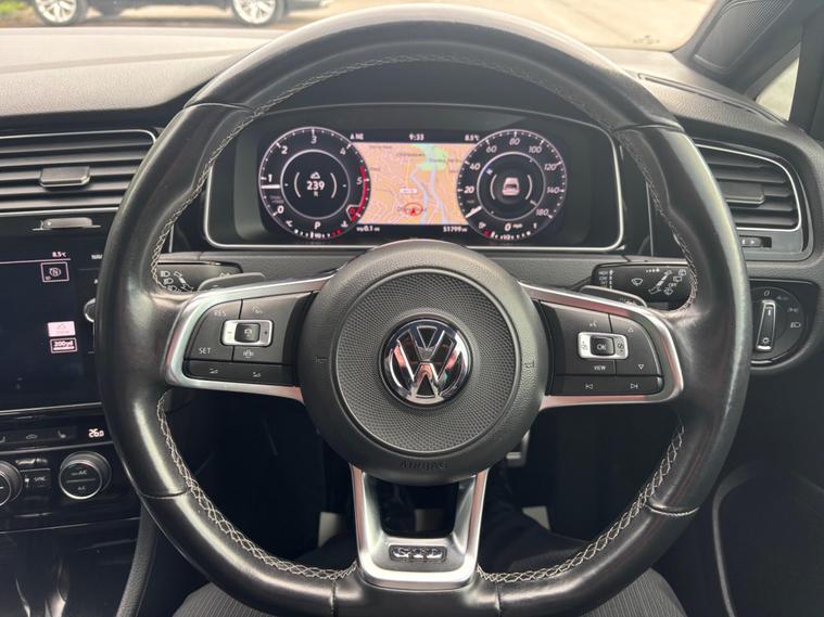 WE ARE PLEASED TO OFFER THIS HIGHLY DESIRABLE HIGH SPECIFICATION WELL MAINTAINED LOW MILEAGE VOLKSWAGEN GOLF 2.0 TDI GTD DSG EURO SIX AUTOMATIC FIVE DOOR + FINISHED IN THE RARE COLOUR OF DARK IRON BLUE METALLIC AND IS COMPLEMENTED WITH A BLACK JACARA CLOTH UPHOLSTERY + ONLY 51, 691 MILES AND IS BACKED WITH AN EXCELLENT SERVICE HISTORY + JUST BEEN SERVICED WHICH INCLUDED THE CAMBELT AND WATER PUMP BEING RENEWED + EXCEPTIONAL CONDITION THROUGHOUT AND DRIVES SUPERB + 184 BHP PERFORMANCE + FULL GTD SPECIFICATION WHICH INCLUDES FRONT SPORT SEATS / HEATED SEATS / ADAPTIVE CRUISE CONTROL / LED HEADLAMPS WITH DYNAMIC FUNCTION / DIGITAL DASH / MULTI FUNCTION LEATHER STEERING WHEEL WITH PADDLE SHIFT / APPLE AND ANDROID CAR PLAY / DISCOVER SATELLITE NAVIGATION / FULL ELECTRIC PACK WITH POWER FOLD DOOR MIRRORS / PRIVACY GLASS / FRONT AND REAR PARKING DISTANCE CONTROL WITH REVERSING CAMERA / 18'' SEVILLA ALLOY WHEELS WHICH ARE FITTED WITH MICHELIN PILOT SPORT TYRES ALL ROUND / DAB TUNER PLUS MUCH MORE + HANDBOOK PACK + DIGITAL PRINTOUT SERVICE HISTORY + 2 X KEYS + ANY TRIAL OR INSPECTION IS WELCOMED + HPI CLEAR WITH CERTIFICATE + SIX MONTHS NATIONWIDE WARRANTY IS INCLUDED + THIS TRULY CHERISHED EXAMPLE MUST BE VIEWED TO BE APPRECIATED. We have been established in Baildon for over 20 years. All our vehicles are fully inspected, prepared and valeted. We are finance specialists. Part exchange is welcome. All major credit and debits accepted. Open 7 days. Our postcode is BD177EX..