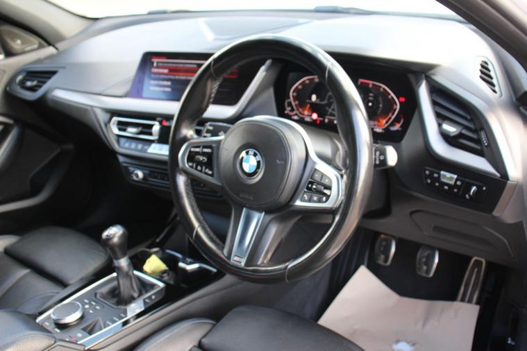 0% Deposit, Finance Available, Harman Kardon, Tech Pack, All Cases Considered.This 2020 BMW 1 Series 118i M Sport offers exceptional value with its remarkably low mileage of just 39, 725 miles for its age. As a Euro 6 compliant model, it features a responsive 1.5 litre petrol engine, paired with the sporty M Sport trim. Inside, you'll find the advanced BMW Live Cockpit Professional and the Tech Pack II, which includes Bluetooth connectivity and a premium branded sound system. The exterior is enhanced by striking 19 inch M Double Spoke Style 552 bi-colour alloy wheels and sophisticated BMW Adaptive LED Headlights. The interior comfort is further elevated by perforated Dakota leather upholstery in black with a distinctive blue highlight.This BMW 1 Series 118i M Sport also boasts a generous boot space, making it practical for everyday use and longer journeys. Its performance is equally impressive, with an acceleration of 0 to 62 miles per hour achieved in a brisk 8.5 seconds. These features, combined with its low mileage, indicate that this vehicle offers a superior driving experience and condition compared to other similar models available on the market..