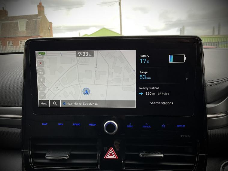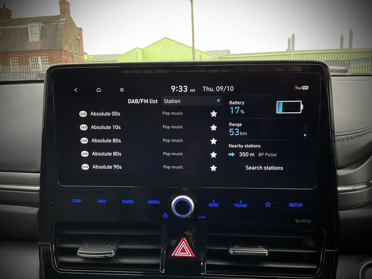 - Infinity audio system with touch screen ; radio receives AM/FM