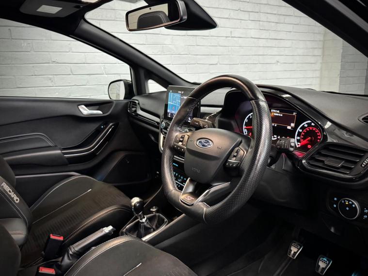 Offered by Motors For Less – AA & Trading Standards Approved Dealer - Reserve with a fully refundable deposit (based upon viewing)2018/18 Ford Fiesta 1.5T ST-3 Performance Pack Euro 6 5dr52, 800 miles full service history - just had a fresh oil service ready for the new keeper and MOT till Oct 2026Services at52, 761 miles48, 324 miles40, 224 miles32, 874 miles23, 542 miles22, 112 miles16, 107 miles12, 301 miles11, 532 miles5 milesRegistration: EG18 POJThis 2018 Ford Fiesta ST-3 is a performance focused hatchback that offers an exhilarating driving experience. Powered by a 1.5L Euro 6 petrol engine, this model boasts impressive acceleration, reaching 0-62mph in just 6.5 seconds. Spec:Gloss black low line bodykit which includes front splitter, side skirts and rear spatsLED headlamps for superior visibilityTilt slide panoramic roof to let in natural lightB and O PLAY premium sound system for an immersive audio experienceReverse cameraST Performance Pack includes launch control and track modeDoor edge protectorsCruise controlSun protection glazingKeyless entryFolding mirrorsHeated seatsHeated steering wheelBlind Spot Information System with Cross Traffic Alert Ford Key Free System for keyless entry===============================Why Buy From UsAA and Trading Standards Approved Dealer with over 450 five star reviewsBuy Your Next Car With Confidence=================================Ready to Make It YoursAny Part Exchange WelcomeLow Rate Finance Available From 9.9% APRApply at dealer's website arrange a viewing appointment only please call 01274914061Same Day Nationwide Delivery AvailableFully Refundable Deposit Secures Any Vehicle (Based upon viewing).