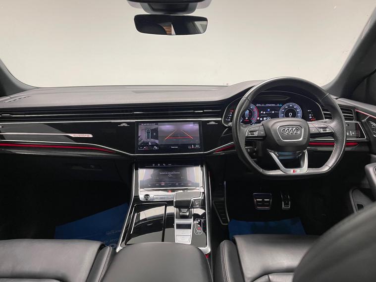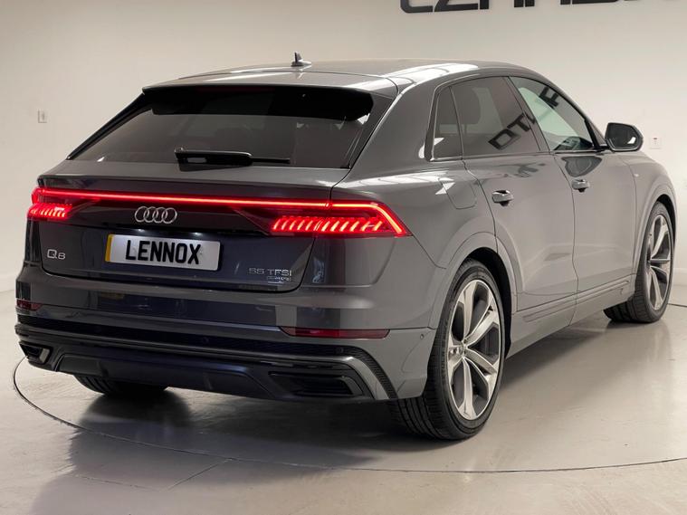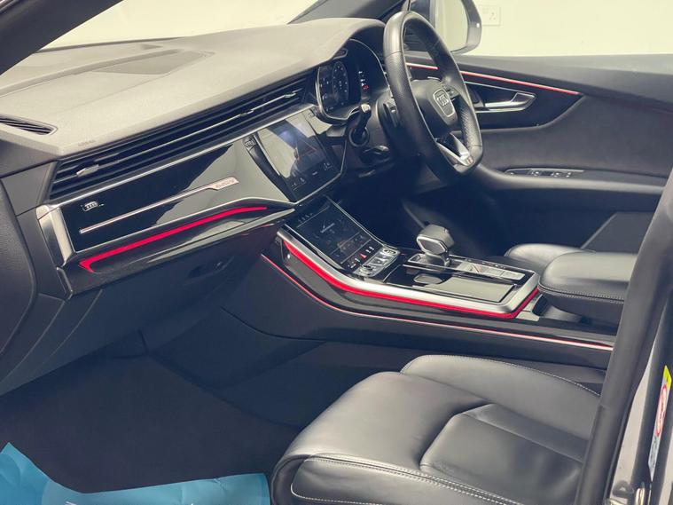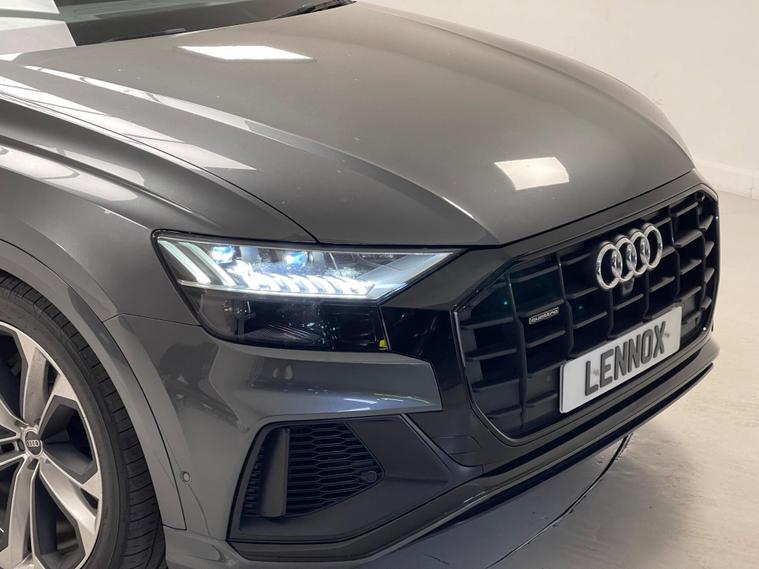 This 2021 Audi Q8 TFSI V6 Black Edition boasts exceptionally low mileage for its age, having covered just 31, 694 miles. This premium SUV features a powerful 3.0 litre petrol engine paired with a smooth four wheel drive system, meeting Euro 6 emissions standards. The Black Edition trim enhances its sophisticated appearance. Inside, you'll find a host of convenient features including electrically adjustable front seats with a driver memory function, a deluxe four zone automatic climate control system, and a rear view camera integrated with parking assistance. The light and rain sensor automatically adjusts headlights, while the Parking System Plus provides front and rear sensors for confident manoeuvring.The Audi Q8 TFSI V6 Black Edition offers impressive performance, accelerating from 0 to 62 miles per hour in a swift 5.9 seconds, demonstrating its dynamic capabilities. Its substantial towing weight of 2800 kg makes it a versatile choice for various needs. Furthermore, the generous boot space ensures ample room for luggage or shopping, making it a practical option for families and adventurers alike. These attributes collectively position this Q8 as a compelling choice, offering a superior blend of performance, comfort, and utility compared to other vehicles in its class..