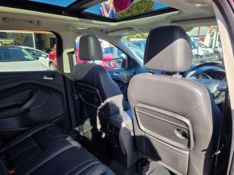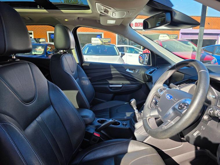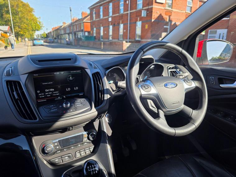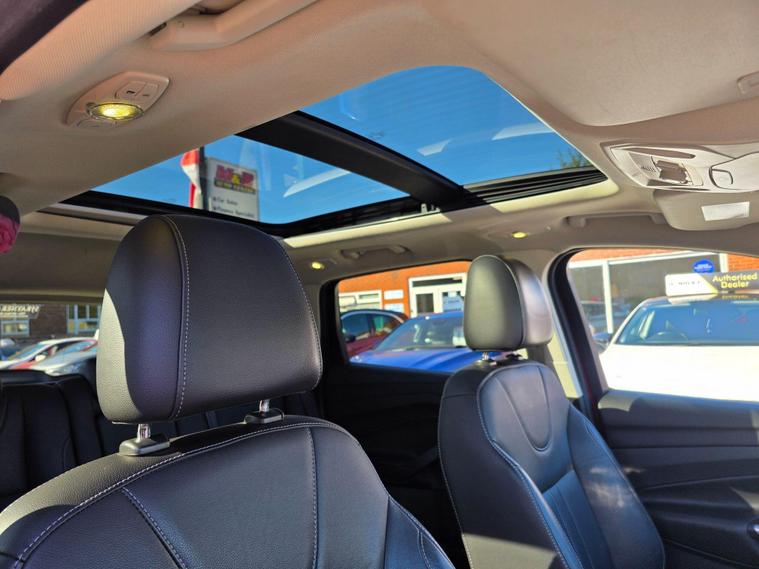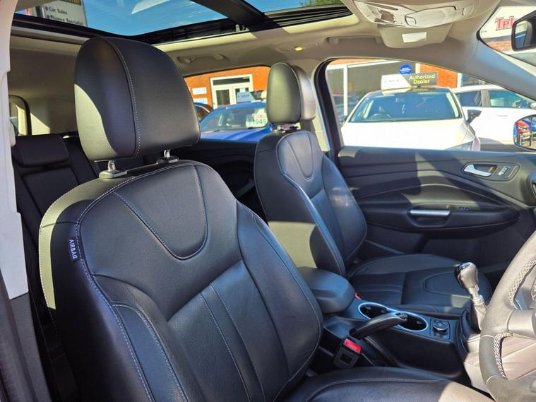 This 2016 Ford Kuga TDCi Titanium X Sport is a superb example of a capable and well equipped family SUV. Featuring a robust 2.0L Diesel engine paired with Four Wheel Drive, this Euro 6 compliant model offers excellent performance and efficiency. Inside, you'll find luxurious Capretto Leather in Ebony, enhancing the premium feel of the Titanium X Sport trim. This Kuga also boasts a host of advanced features, including Adaptive Cruise Control for effortless long journeys, Keyless Opening with a Hands Free Power Tailgate for ultimate convenience, and Active City Stop for added safety in urban environments. The inclusion of the Driver Assistance Pack further underscores its commitment to driver support and security.With an impressive highlight fuel economy of 54 mpg, this Ford Kuga demonstrates its efficiency, making it a cost effective choice for both daily commutes and longer trips. Its low CO2 emissions also mean it is kinder to the environment. These highlights, combined with its comprehensive specification and Four Wheel Drive capability, position this Kuga TDCi Titanium X Sport as a superior option compared to many other vehicles in its class, offering a blend of practicality, comfort, and advanced technology..