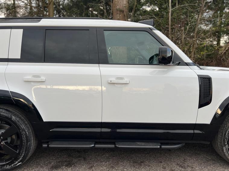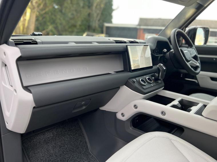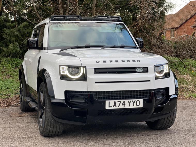 Sayarti LTD are excited to offer you this 2025 Land Rover Defender 110 D250 S, a four-wheel-drive diesel car with a 3.0-litre engine and Euro 6 emission class. This vehicle comes in the S trim and has had only one owner, with very low mileage of just 1400 miles. It's equipped with a sliding panoramic roof, including a panoramic sunroof that opens to bring the outside in. The 22in alloy wheels – Style 5098 with 5 spokes in Gloss Black – add to its distinctive appearance. The Driver Assist Pack, which includes Blind Spot Assistance (BLIS), enhances safety and convenience, complemented by LED headlights for improved visibility. Air Suspension option has been fitted which is a must for these Defenders, Meridian Sound System, AppleCarPlay, Light Cloud Interior, Lane Assist with Adaptive Cruise control, Wireless Charger, LED Roof Pod. Call now to enquire!.