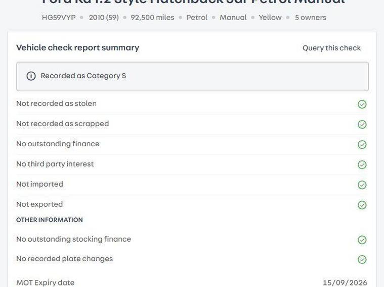 This 2010 Ford Ka Style is ready for the road with an MOT valid until September 2026. It features a 1.2 litre petrol engine and is presented in the Style trim.This Ka offers excellent fuel economy, achieving a notable 55 miles per gallon, which is better than many similar vehicles. It also benefits from a low insurance group and low CO2 emissions, making it an economical choice for everyday driving.ALL of our vehicles have at least 6 months MOT, 72 POINT SALES CHECK, carpet mats, a standard WARRANTY and 12 months FREE AA COVER (customer registration required), providing our customers with the highest quality service and product. We have a team of in-house technicians allowing us to carry out our own mechanical preparation and remedial work in a timely and efficient manner. FINANCE (including zero deposit and low credit scores) and EXTENDED WARRANTIES are also available. NATIONWIDE DELIVERY and PART EXCHANGE is also available. PLEASE ASK FOR DETAILS. Tiley Motors is celebrating over 30 years in business, something we are extremely proud of. We are a family run, independent and trusted used car retailer in the heart of Bristol, as proven by our 4.6 star AutoTrader dealer rating..
