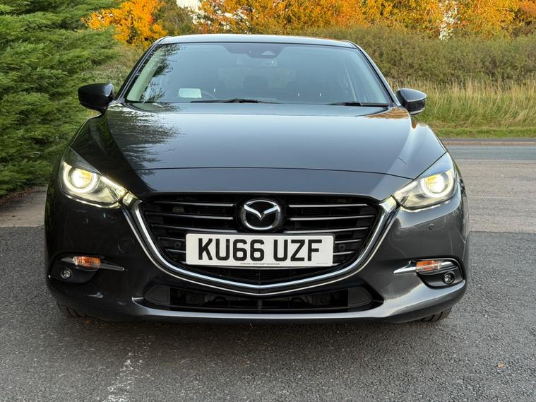 This 2017 Mazda3 SKYACTIV-G Sport Nav is a superb example, having had only two owners from new. It boasts a responsive 2.0 litre petrol engine and meets Euro 6 emissions standards. This Sport Nav trim level comes equipped with a comprehensive Safety Pack, featuring Blind Spot Assistance and LED headlights for enhanced visibility. You'll also appreciate the convenience of Smart Keyless Entry, front and rear parking sensors for effortless manoeuvring, and a Colour Active Driving Display which includes a head up display to keep your eyes on the road. Inside, the heated front seats offer three stage settings for your comfort.The Mazda3 is designed to impress, and this particular model offers several advantages over similar vehicles. Its acceleration is notably brisk, achieving 0-62mph in just 8.9 seconds, demonstrating its spirited performance. Furthermore, it benefits from a low insurance group, making it an economical choice for many drivers. Practicality is also a strong point, with a large boot space providing ample room for luggage or shopping..