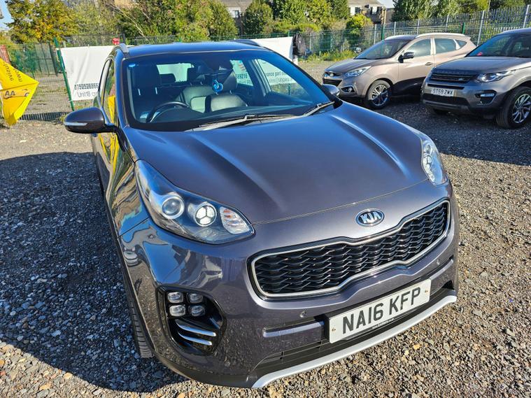1 owner, full service history, ulez compliant, 3months warranty, Keyless start button, cruise control, Bluetooth handsfree system, sat-nav, , leather seats, heated seats, reverse camera, 2keys, mot till 26/09/2026. 12months free aa breakdown cover, free 20miles delivery and nationwide delivery available for extra cost.This 2016 Kia Sportage T GDi GT Line is a superb example, having had only 1 owners from new. It boasts a powerful yet efficient 1.6 litre petrol engine paired with a four wheel drive system, ensuring confident handling in all conditions. As a Euro 6 compliant vehicle, it meets modern emissions standards. Inside, you'll find comfortable heated front seats, and the GT Line trim offers a premium feel. For convenience, it features a reversing camera system with rear parking assistance and front parking sensors, alongside automatic headlights for effortless driving. Stay connected and enjoy your music with the integrated Bluetooth system, which includes music streaming capabilities.This Sportage T GDi GT Line offers a compelling package, highlighted by its impressive acceleration, reaching 0 to 60 miles per hour in just 8.8 seconds, demonstrating its spirited performance. Its large boot space provides ample room for luggage or shopping, making it a practical choice for families and individuals alike. Furthermore, its placement in a low insurance group means that running costs are kept to a minimum, offering excellent value for money compared to similar vehicles..