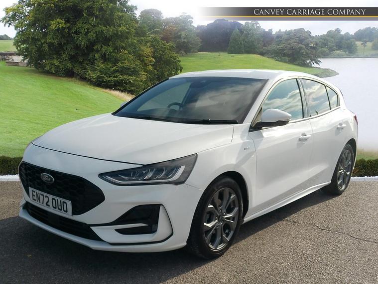 This 2023 Ford Focus T ST-Line presents a superb ownership opportunity, having been meticulously maintained by just one owner from new and boasting a low mileage of only 19, 000 miles. This Euro 6 compliant model is powered by an efficient 1.0L petrol engine, offering a compelling blend of performance and economy. Inside, you'll find the advanced Ford SYNC4 Navigation system complete with a generous 13.2 inch touchscreen, seamlessly integrating Android Auto and Apple CarPlay for your convenience. Comfort is assured with DEATC Dual-Zone Electronic Automatic Temperature Control, allowing both driver and passenger to set their preferred climate. Practicality is also a key consideration, with front and rear parking sensors, including parking assistance, making manoeuvring effortless. The Ford Key Free System provides keyless entry and keyless start, adding to the modern driving experience, while automatic headlights ensure optimal visibility.The Ford Focus T ST-Line stands out with its impressive fuel economy, achieving a remarkable 52 miles per gallon, which indicates it is more economical than many similar vehicles. Its acceleration from 0-62mph in just 10.2 seconds demonstrates a responsive drive, and its low CO2 emissions highlight its environmental consideration. Furthermore, the generous boot space offers ample room for luggage or shopping, making it a versatile choice for everyday life..
