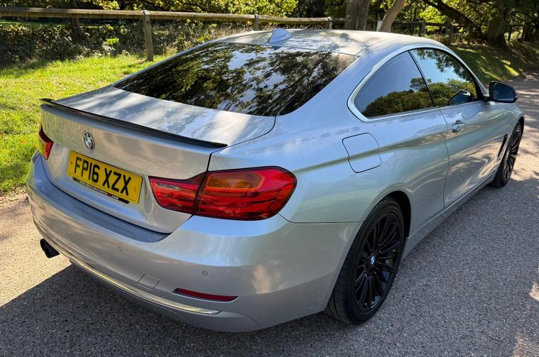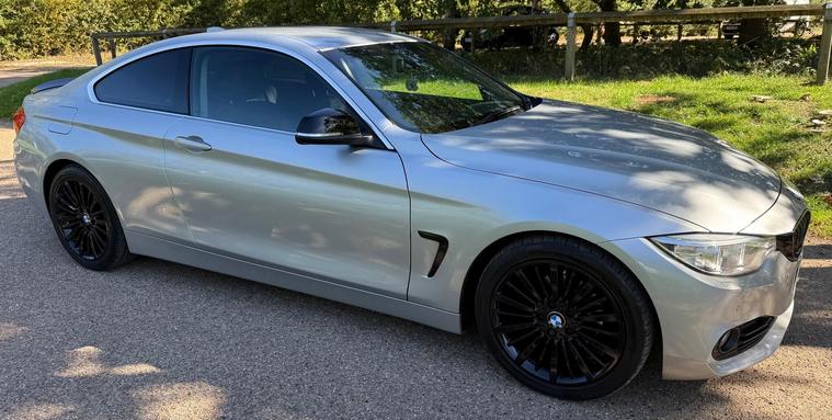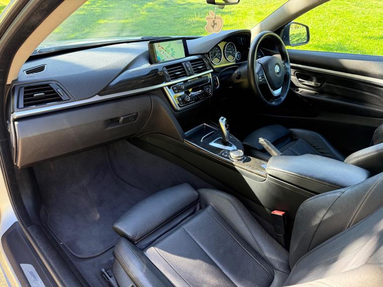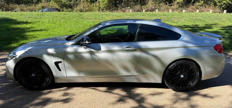 BMW 4 Series 2.0 420i Luxury Auto Euro 6 ULEZ COMPLIANT (s/s) 2dr COUPE. 2016''16'' REG, FINISHED IN METALLIC SILVER, 3 PREVIOUS OWNERS, FULL SERVICE HISTORY, 12 MONTHS MOT FOR COMPLETE PIECE OF MIND, FULL BLACK LEATHER INTERIOR, HEATED SEATS, WIDESCREEN PROFESSIONAL SAT NAV, REVERSING CAMERA, XENON HEADLIGHTS, BLACK EXTERIOR PACK, NEWLY REFURBISHED ALLOY WHEELS, PARKING SENSORS, ARM REST, DUAL CLIMATE AIR CONDITIONING, CRUISE CONTROL, PRIVACY GLASS, BLUETOOTH AUDIO, MULTIPLE AIR BAGS, ALL THE STANDARD FEATURES, RUNS AND DRIVES LOVELY, VIEWING BY APPOINTMENT ONLY, ANY PX CONSIDERED, 3 MONTHS WARRANTY AS STANDARD WITH OPTIONS TO EXTEND FOR 12/24/36 MONTHS, FCA REGULATED, ALL IN HOUSE FINANCE ARRANGED THROUGH OUR LARGE PANEL OF LENDERS, AA APPROVED DEALER, 12 MONTHS FREE AA BREAKDOWN COVER INCLUDED..