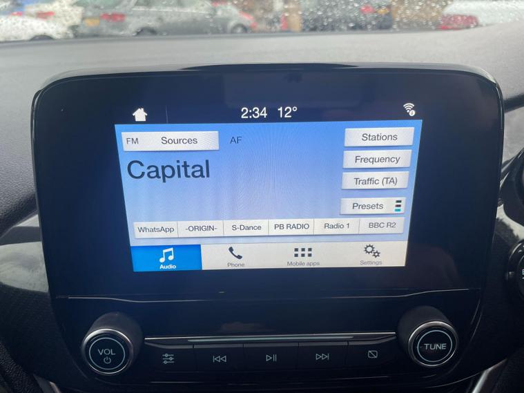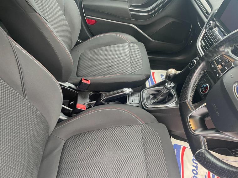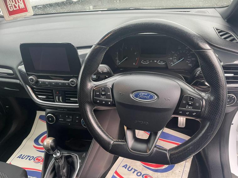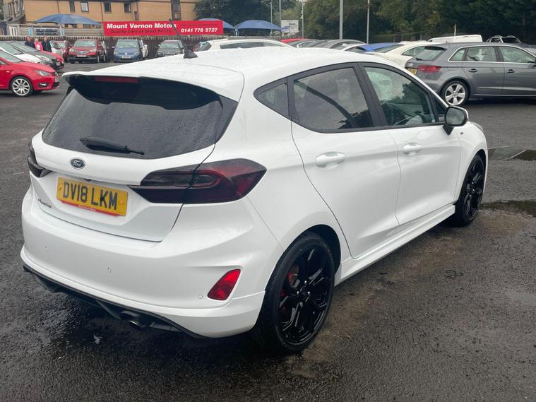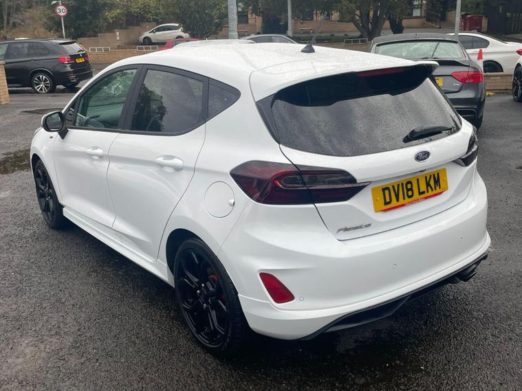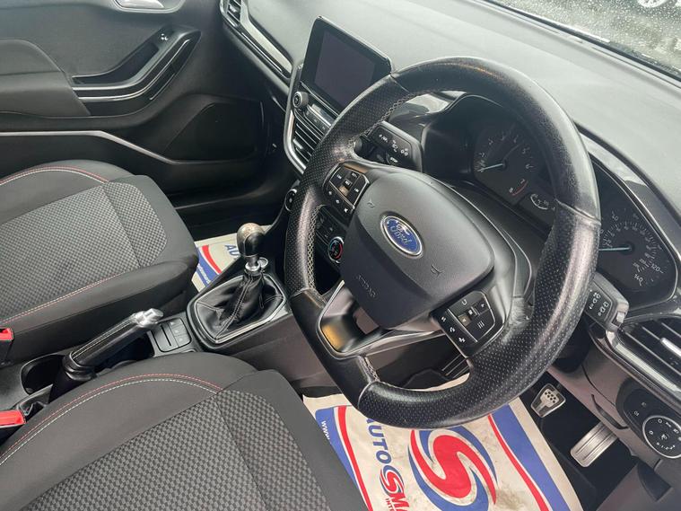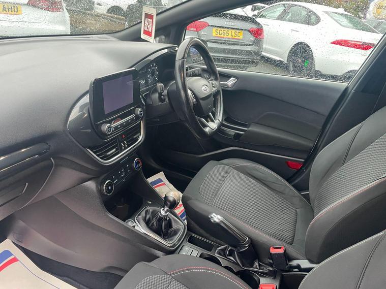 This 2018 Ford Fiesta ST Line boasts a clear vehicle history, offering you peace of mind. This popular hatchback is equipped with a 1.0 litre petrol engine and meets Euro 6 emissions standards. Inside, you'll find manual air conditioning for your comfort, and the Ford DAB radio with Ford SYNC3 is compatible with both Apple CarPlay and Android Auto, keeping you connected on the go. The NCAP Pack includes automatic headlights, which switch on and off automatically, adding to the convenience and safety of this well maintained vehicle.Experience impressive efficiency with a fuel economy of up to 55 miles per gallon, alongside low CO2 emissions, making this Fiesta an economical choice. Its performance is also noteworthy, achieving 0 to 62 miles per hour in just 9.0 seconds. These highlights demonstrate how this Ford Fiesta ST Line offers a compelling blend of efficiency, performance, and modern features compared to other vehicles in its class..
