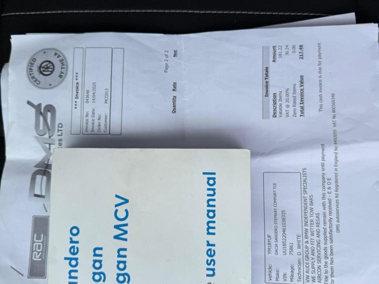 This Dacia offers great family motoring with space for all the family!The car has a great up to date service history and it’s in superb condition, the car drives perfectly and will come with a 3 month warranty and AA breakdown cover for 1 year.Check out our 5 star reviews on Autotrader and Google and see what our many happy customers have been saying about us!Discover this 2018 Dacia Sandero Stepway TCe Comfort, a smart choice for those seeking value and practicality. This Euro 6 compliant model boasts a 0.9 litre petrol engine, offering an efficient drive. Inside, you'll find essential features designed for your convenience, including Bluetooth connectivity for seamless audio streaming and handsfree calls, and rear parking sensors to assist you when manoeuvring. The manual air conditioning ensures a comfortable cabin temperature, no matter the weather.This Sandero Stepway stands out with its remarkably low insurance group, making it an economical option for many drivers. Furthermore, its generous boot space provides ample room for shopping, luggage, or equipment, demonstrating its superior practicality compared to other vehicles in its class. This combination of affordability and spaciousness makes the Dacia Sandero Stepway TCe Comfort a compelling proposition..