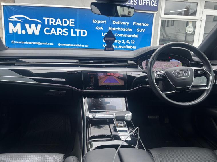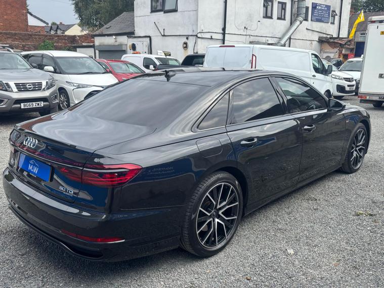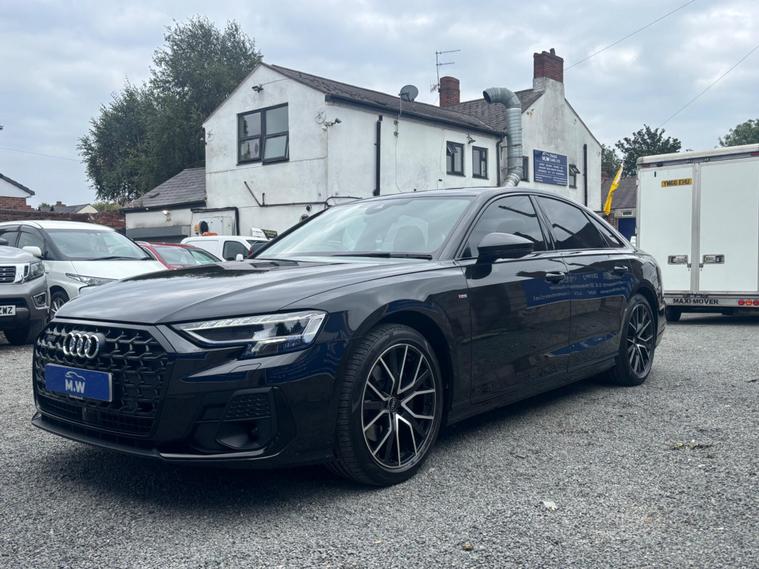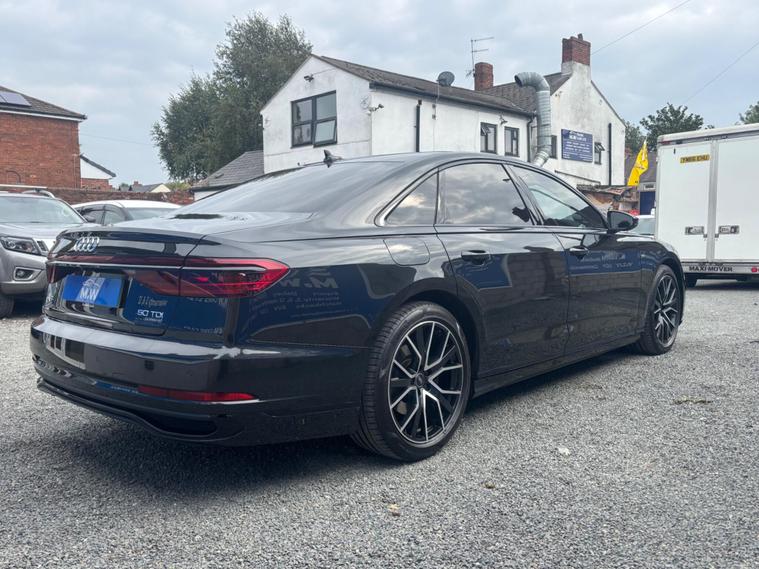 This 2023 Audi A8 TDI V6 Black Edition presents an exceptional ownership proposition with its remarkably low mileage of just 5000 miles. As a Euro 6 compliant model, it features a powerful 3.0 litre diesel engine paired with Audi's renowned four wheel drive system, ensuring confident performance in all conditions. This particular example boasts a full dealership service history, offering peace of mind for its next owner. The Black Edition trim enhances its sophisticated appearance, while notable features such as the Parking System Plus with front and rear sensors, Adaptive Cruise Control with Speed Limiter, and a Head Up Display contribute to a refined driving experience. Further enhancing convenience are the Audi Phone Box with wireless charging and the sleek Operating Buttons in black glass look with haptic feedback and extended aluminum look, which also incorporate memory seat functions.The impressive acceleration of this A8, achieving 0-62mph in a swift 5.9 seconds, demonstrates its dynamic capabilities, setting it apart from many vehicles in its class. This performance, combined with its substantial boot space, makes it a practical yet exhilarating choice for both long journeys and daily use. The thoughtful integration of advanced technology and driver aids throughout the cabin underscores Audi's commitment to comfort and innovation, making this A8 a truly distinguished and capable luxury saloon..