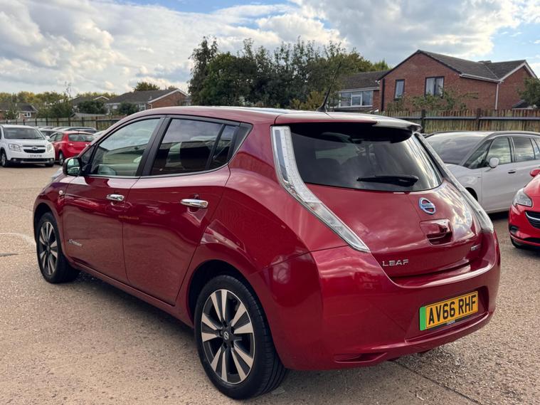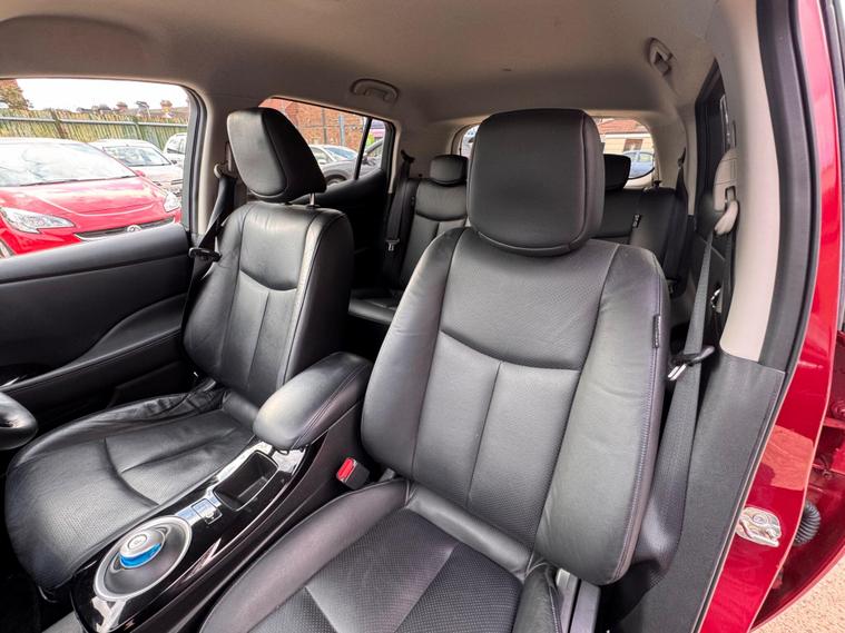 This 2016 Nissan Leaf Tekna presents an exceptional opportunity with its remarkably low mileage of just 46, 900 miles for its age. As an electric vehicle, it offers a clean and efficient driving experience, boasting a 30 kWh battery that provided a maximum range of 153 miles when new. Charging is convenient, with a full charge at home using a 7kW charger taking approximately 9 hours, while rapid public charging can replenish the battery from empty to 80% in as little as 30 minutes. This Tekna model comes equipped with a 6.6 kW on board charger for 32AMP charging, automatic LED headlights with a follow me home function, and energy efficient digital climate control.Further enhancing its appeal, this Nissan Leaf features both front and rear heated seats, ensuring comfort in all conditions. The generous boot space is a practical highlight, offering ample room for shopping or luggage. These features, combined with its low mileage and electric powertrain, position this Leaf as a superior choice for those seeking an economical and well equipped vehicle..