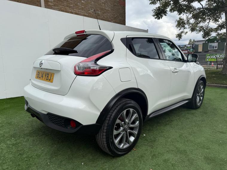 An excellent example of the Nissan Juke 1.2 DIG-T Tekna finished in white. Features include reverse camera, 360 camera, black leather seats, heated seats, cruise control, automatic headlights, navigation, bluetooth, aircon, alloy wheels, electric windows and 2 keys. The car has 5 seats, 5 doors with a mileage of 64, 226. It was registered in 2014, has a Petrol fuel system and a Manual gearbox. The car is HPI clear, ULEZ compliant and the MOT runs out on September 2026. This car has service history. Get the car delivered to your address by giving us a call, or come and collect from our dealership at a time that suits you. This car includes a free 90-day warranty and 1 year free breakdown cover by AA. Give us a call for flexible finance options. We offer drive-away insurance, extended warranties and car servicing for extra peace of mind. We are open 7 days a week and offer great prices on part exchanged vehicles. Unit E4, Middlesex Business Centre, Bridge Road, Southall, London, UB2 4AB..