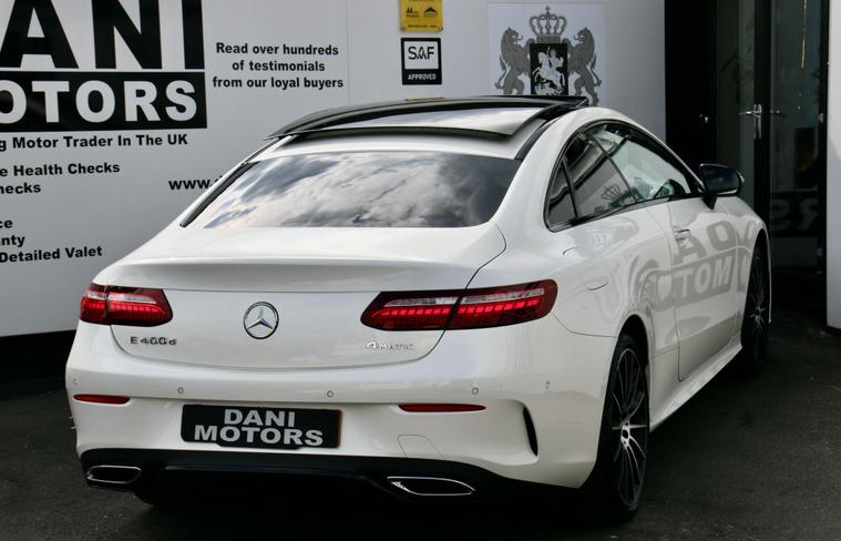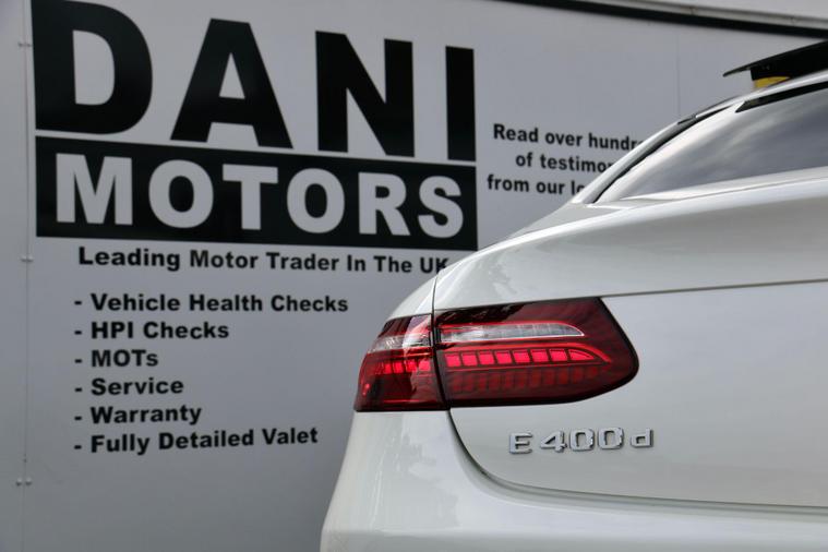 This absolutely stunning Mercedes-Benz E Class 2.9 E400d AMG Line (Premium Plus) finished in WHITE features an array of extras from factory include, Apple Carplay and Android auto prep, Pan Roof, 360º camera system, Burmeister surround sound system, Heated front seats, Blind spot assist, Ambient lighting, Alloy Wheels, Navigation System, Bluetooth, DAB Radio and so much more. This vehicle is ULEZ Compliant. FREE 12 Months MOT provided upon request, We offer optional Ceramic Coating to all our vehicles for added paintwork protection. You may see reflections of other surrounding objects. Full Dealer Facilities. HPI Clear, Service History, Only 1 Owner from New, Brilliant Value. All our cars undergo a comprehensive 150 point check together with a brake inspection. Mechanical Report and HPI Certificate provided (upon request). Here at Dani Motors, quality matters to us. Not just quality service but the high quality of our vehicles, and the standard at which they hit our forecourts. Our sole purpose is to deliver the highest quality cars possible, both mechanically and aesthetically. You can also reserve the car until you can come and take it for a test drive, so you do not miss out! Buy your next car from us, as we are a trusted used car dealership. We also provide finance from a few UK's leading lenders, an optional extra 5-day drive-away insurance, part exchange so you can get everything sorted in one place. Every car has passed a rigorous pre-sales inspection in our workshop, which are home to our technicians..