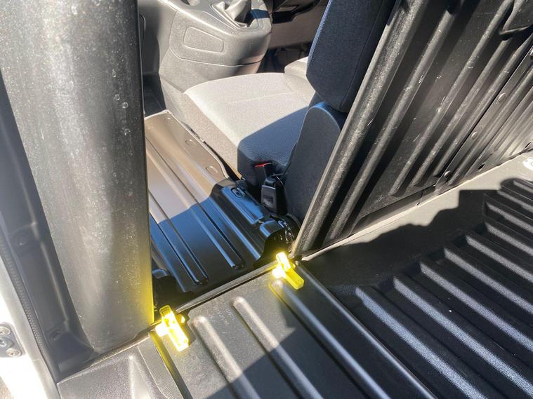 - EXTENSO Modular Folding Passenger Bench Seat with Pivoting Writing Table - Storage Under Central Seat - Load Through Hatch in Bulkhead and Load Protection Cover Compliant with ISO27956