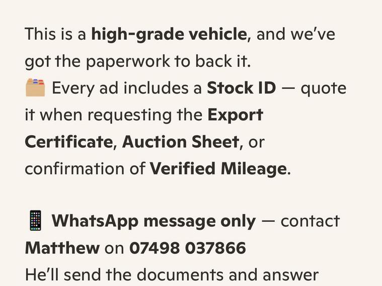 DRIVE AWAY INSURANCE AVAILABLE.....VIEWING BY APPOINTMENT ONLY.