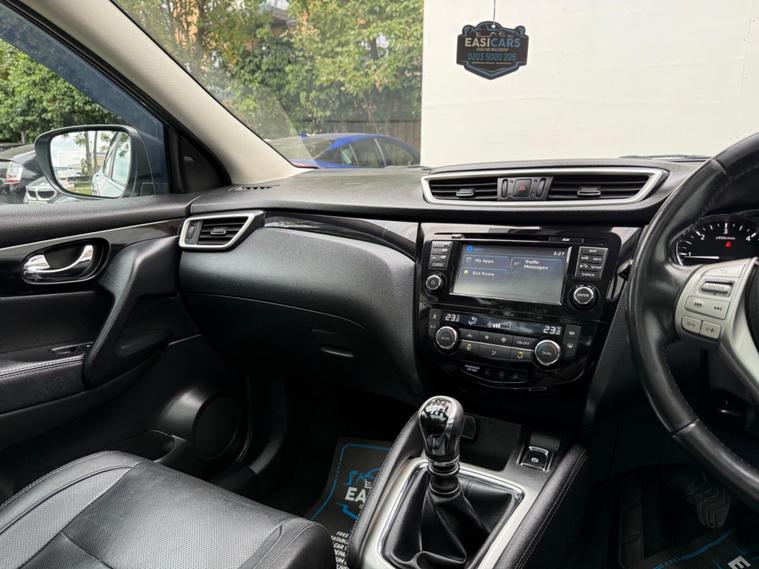 An excellent example of the Nissan Qashqai 1.5 dCi Tekna finished in grey. Features include sunroof, reverse camera, front and rear parking sensors, black leather seats, heated seats, cruise control, automatic headlights, navigation bluetooth, fresh tyres, aircon, alloy wheels, electric windows and 2 keys. The car has 5 seats, 5 doors with a mileage of 130, 588. It was registered in 2014, has a Diesel fuel system and a Manual gearbox. The MOT runs out on June 2026. The car is HPI clear and also comes with service history. Get the car delivered to your address by giving us a call, or come and collect from our dealership at a time that suits you. Every car includes a free 90-day warranty and 1 year free breakdown cover by AA. Give us a call for flexible finance options. We offer drive-away insurance, extended warranties and car servicing for extra peace of mind. We are open 7 days a week and offer great prices on part exchanged vehicles. We accept all major Debit and Credit cards. Unit E4, Middlesex Business Centre, Bridge Road, Southall, London, UB2 4AB..