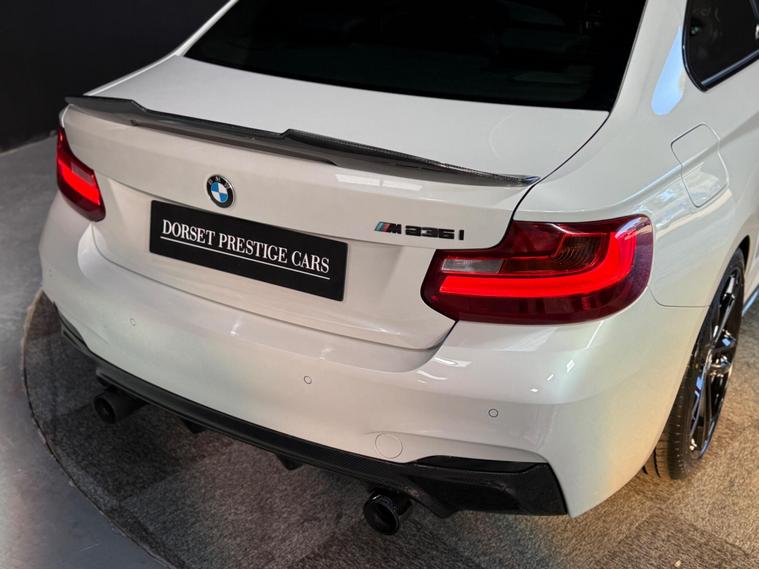 Dorset Prestige Cars are proud to present this BMW 2 Series 3.0 M235i Auto, Looks stunning in Mineral white metallic, 19 inch black M Sport Alloy wheels, full M Sport body extras including Carbon fibre effect including front splitter, boot Spoiler wing mirror covers, rear diffuser, rear privacy glass, rear parking sensors, remote central locking and alarm, Full black leather interior, electric windows and mirrors, Multi-function steering wheel with cruise control, centre media screen with SAT NAV, DAB Radio and Bluetooth connection, Dual climate control and air-conditioning and much more. 2xKeys. Great looking and performing Coupe!!Service History: BMW Main Dealer 09/08/2017 @ 1057 miles, BMW Main Dealer 30/08/2018 @ 1555 miles, BMW Main Dealer 10/08/2020 @ 16732 miles, BMW Main Dealer 13/07/2021@ 22290 miles, BMW Main Dealer 27/07/2022 @ 27734 miles, Specialist 30/08/2023 @ 31852 miles, Specialist 27/10/2024 @ 36824 miles, Specialist 21/03/2025 @ 47211 miles, Specialist 27/05/2025 @ 57397 miles. Nationwide Delivery Trailered or Driven you Choose, 6 Months Warranty+ Extended warranties available 12 Months AA Breakdown....This vehicle comes with 6 months Warranty for full peace of mind (up to 36 month extension available), 3 or 5 year ceramic coating available, train station collection service, nationwide delivery available on all vehicles. Part Exchange welcome. Open Monday to Saturday ***Viewing By Appointment Only*** All Major Credit and Debit Cards Accepted. Please visit our website for more information on our services and to view our other vehicles currently in stock. Secure this vehicle today for £500 deposit T&C’s Apply! All our vehicles are HPI clear and have been through our workshop for a full health check for peace of mind. See our 5***** reviews , Buy with confidence through us. Find us on Facebook Instagram and YouTube! View our full range of cars on our website and Autotrader profile..