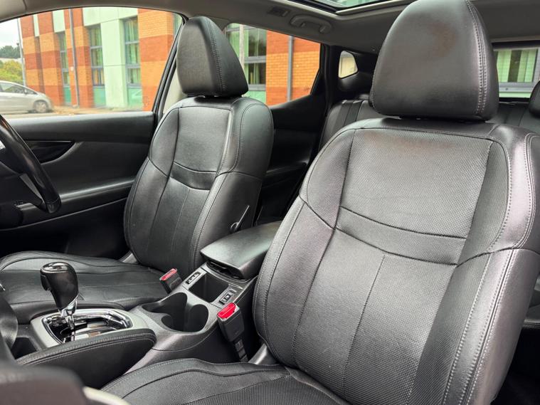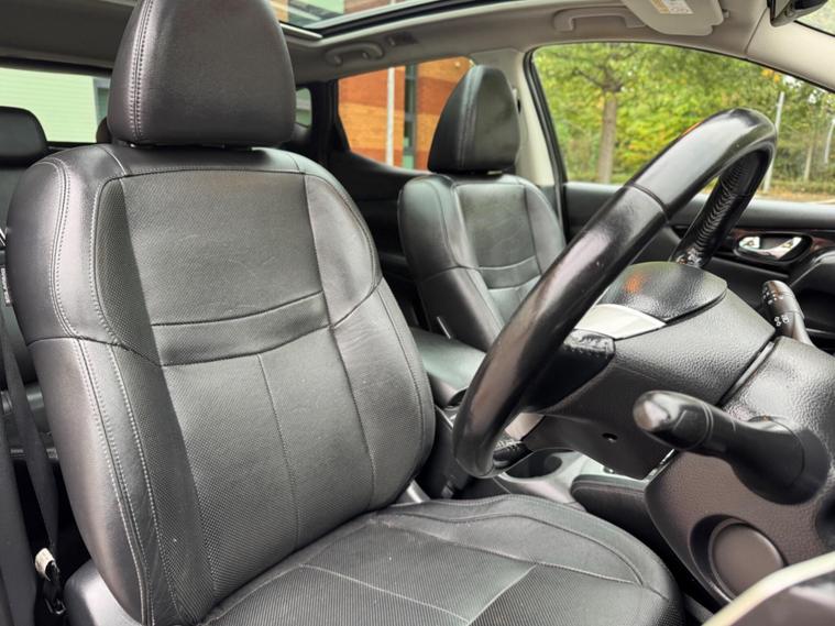 This Nissan not only comes with FULL SERVICE HISTORY but also consists of convenient yet stylish specs. This vehicle includes FRONT AND REAR PARKING SENSORS, LEATHER INTERIOR TRIM, HEATED SEATS, BLACK PACK, SUN ROOF, DUAL AC STSTEM, REVERSE CAMERA, ALLOY WHEELS, 6 SPEAKERS, SPLIT REAR FOLDING SEATS, AUX-IN SOCKET, ALARM, ARMREST REAR, AUTO DIMMING REAR VIEW MIRROR, BODY COLOURED HANDLES, BLIND SPOT WARNING, CHROME GLASS SURROUND, CLIMATE CONTROL, CRUISE CONTROL WITH SPEED LIMITER, DAB RADIO, EBD, ESP, FRONT COLLISION AVOIDANCE, FRONT FOG LIGHTS, HEAD RESTRAINTS, INTELLIGENT KEY, LEATHER GEAR KNOB, LANE DEPARTURE WARNING, PANORAMIC GLASS ROOF, PARKING SENSOR, POLLEN FILTER, MOVING OBJECT DETECTION, REAR PRIVACY GLASS, ROOF RAILS, SERVICE INDICATOR, NISSAN CONNECT, SERVICE INDICATOR, SMART VISION PACK, SPEED-SENSITIVE AUTOLOCK FUNCTION, TPMS, BLUETOOTH, TRACTION CONTROL, TRAFFIC SIGN RECOGNITION, USB PORT, ELECTRIC PARKING BRAKE and many more.* All our vehicles come with 12 months MOT and are HPI CLEAR. We provide 3 months engine and gearbox warranty with all vehicles however there can be an extended warranty for an additional fee. We are open 7 days a week from Mon-sun from the hours of 9am - 7pm. Please get in touch with us to book your viewing prior to arrival to prevent any delays from both our staff and yourselves. If there are any questions please do not hesitate to get in touch with a member of the team*.