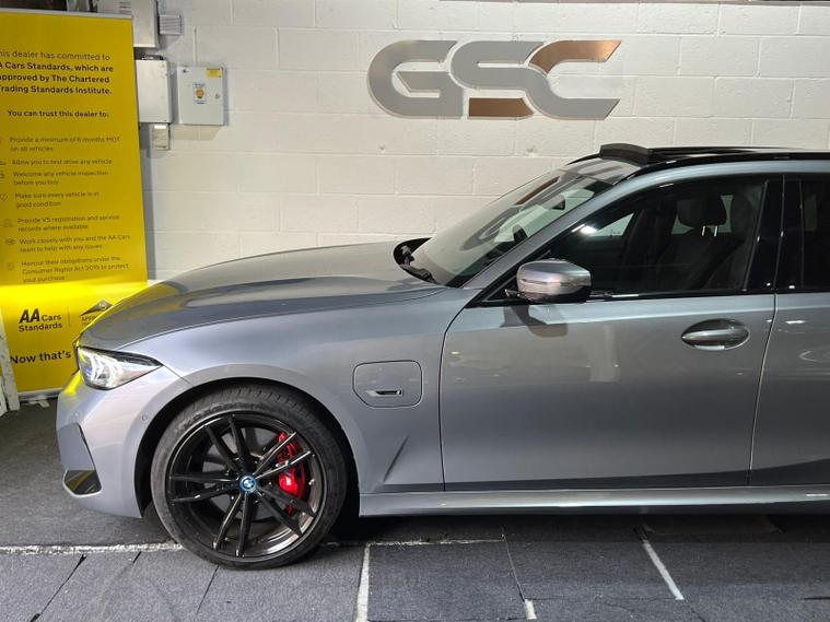 This 2022 BMW 3 Series 330e M Sport presents an exceptional ownership proposition with its very low mileage of just 19, 900 miles and a full service history, all confirmed by a clear vehicle history check. This Euro 6 compliant plug-in hybrid model combines a 2.0 litre petrol engine with electric power, offering an impressive 0-62mph acceleration in only 5.9 seconds. The M Sport trim enhances its dynamic appeal, while the Comfort Plus Package adds features like keyless entry, memory seats, and a heated steering wheel for ultimate convenience. Further enhancing the driving experience are the panoramic glass sunroof, the Technology Package with Bluetooth, Head Up Display, and wireless phone charging, the Visibility Pack with LED headlights, and a premium Harman Kardon surround audio system.The inclusion of the Comfort Plus Package, Technology Package, Visibility Pack, and the panoramic glass sunroof signifies a superior level of specification compared to many other 3 Series models. These carefully selected options ensure that this 330e M Sport offers a refined and technologically advanced driving environment. The powerful yet efficient plug-in hybrid powertrain, coupled with the M Sport enhancements and the comprehensive feature set, makes this BMW 3 Series a compelling choice for those seeking performance, luxury, and advanced technology..