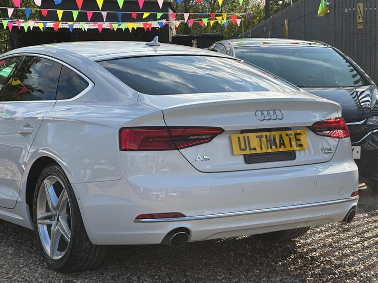 ULTIMATE MOTORS IS PROUDLY PRESENTING YOU THIS EYE CATCHING AUDI A5 2.0 TFSI QUATTRO 5DR IN AUDI INDIVIDUAL GLACIER WHITE COLOUR AND COMPLEMENTED WITH 18INCH 5 PARALLEL SPOKE DESIGN ALLOY WHEELS. THIS VEHICLE COMES WITH £1, 600 OF FACTORY FITTED EXTRA SPECIFICATION WHICH INCLUDES THE FOLLOWING; CARPLAY & ANDROID AUTOS, 360 DEGREE VIEW CAMERA WITH CORNER VIEW INCLUDING FRONT AND REAR SURROUNDING PARKING DISTANCE CONTROL SENSORS, BLUETOOTH CONNECTIVITY FOR PHONE AND MEDIA, FM/AM RADIO, ELECTRICALLY ADJUSTABLE FRONT HEATED SEATS WITH 4 WAY ELECTRIC POWRED LUMBAR SUPPORT, SELF PARKING FUNCTION, AUDI VIRTUAL COCKPIT, AUTOMATIC AIR CONDITIONING CLIMATE CONTROL WITH TWO ZONE DISPLAY, DISTANCE WARNING ASSIST, CRUISE CONTROL WITH SPEED LIMITER, ELECTRIC OPERATE TAILGATE, KEYLESS GO ENGINE START AND STOP PUSH BUTTON, 7IN HIGH RESOLUTION COLOUR DISPLAY SCREEN, BI- XENON HEADLIGHTS WITH LED DAY TIME RUNNING LIGHTS, ELECTROMECHANICAL PARKING BRAKE, FRONT FOG LIGHTS, USB PORTS, ELECTRICALLY ADJUSTABLE HEATED AND FOLDING DOOR MIRRORS, TYRE PRESSURE WARING SYSTEM. THIS VEHICLE IS ULEZ EXEMPT.WE ARE OFFERING NATIONWIDE DELIVERY ON ALL VEHICLE (PLEASE GET IN TOUCH DIRECTLY FOR DETAILS). WE CAN ALSO CONDUCT VIRTUAL VIEWINGS AND ACCOMMODATE ANY REQUESTS YOU MAY HAVE. ALL OUR ADVERTISED STOCK IS TEST-DRIVEN, INSPECTED BY OUR MECHANIC TO MAKE SURE OUR CUSTOMERS DRIVE AWAY WITH THE BEST QUALITY CARS. WE CAN PROVIDE A VIDEO WALK AROUND THIS VEHICLE UPON REQUEST.ALL OF OUR VEHICLES ARE SUPPLIED WITH A 3 MONTHS WARRANTY WITH EXTENDED OPTION. 12 MONTHS FREE AA BREAKDOWN COVER. FINANCE AVAILABLE..
