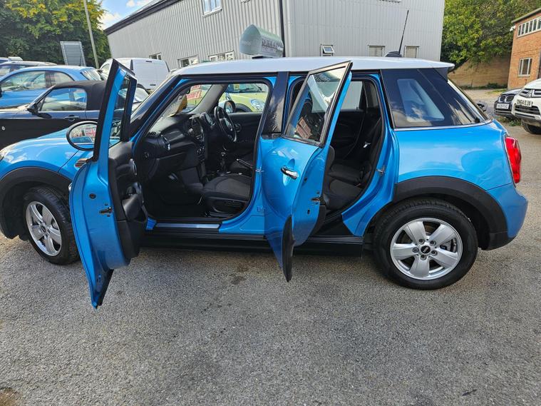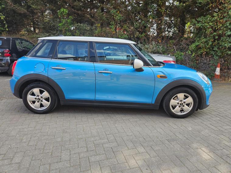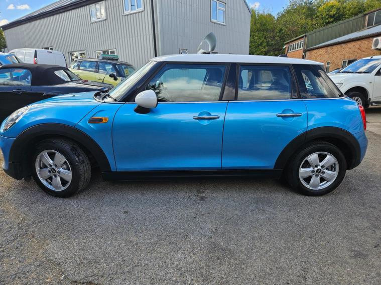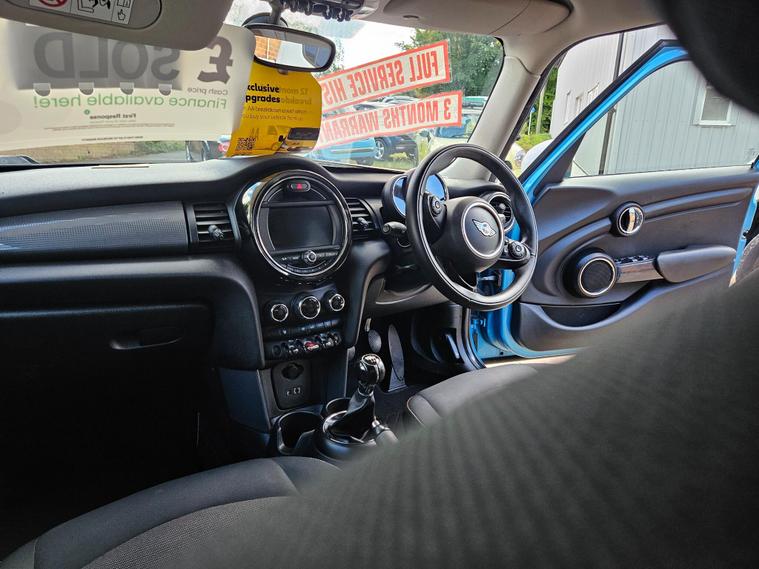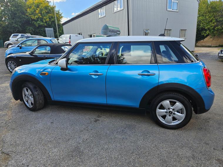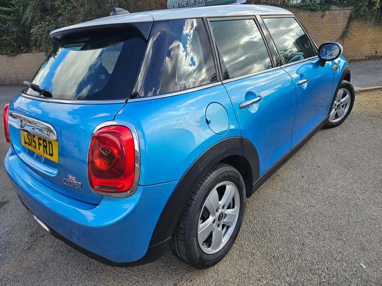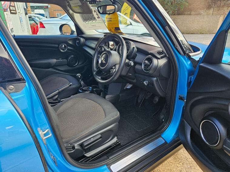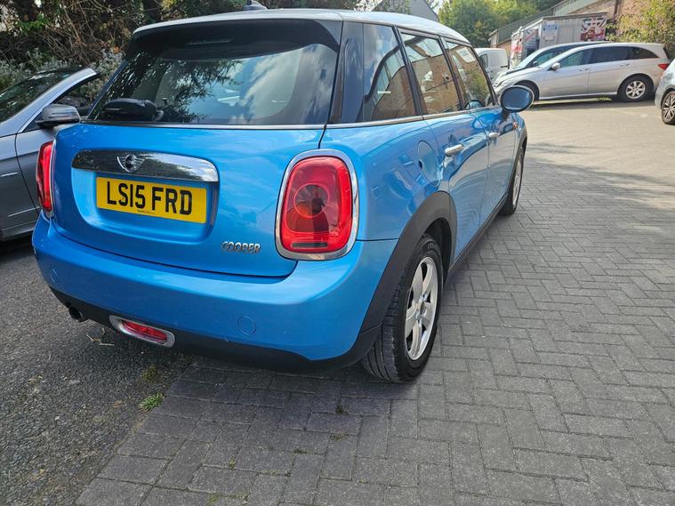 This 2015 Mini Hatch 1.5 Cooper Hatchback with a petrol engine and manual transmission has traveled 90000 miles and comes with an MOT that expires on 09/08/2026. This five-door, five-seater vehicle is ULEZ compliant and features Chrome Line Exterior, Electric Blue color, and White Roof and Mirror Caps. Equipped with a 3-Spoke Sport Leather Steering Wheel and automatic dual-zone air conditioning, this Euro 6 (s/s) vehicle delivers 136 ps and is ideal for city driving. With its compact hatchback design, this Mini offers both style and practicality for drivers in the UK..