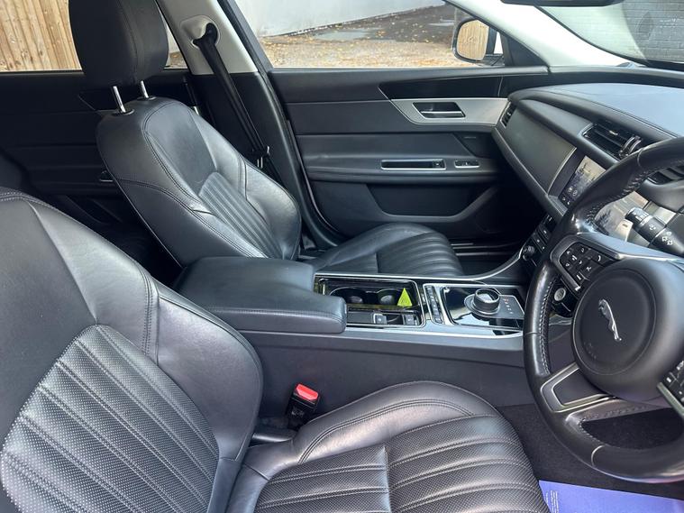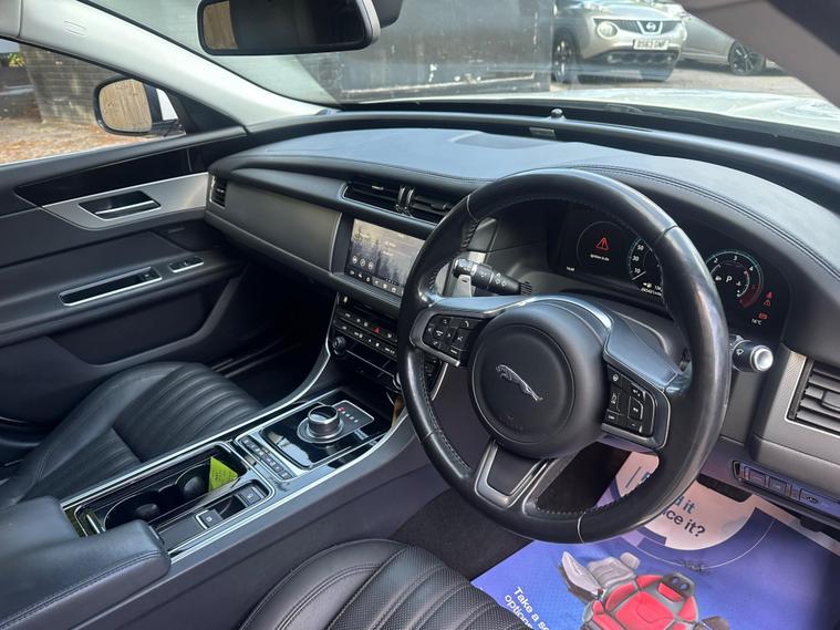 This 2018 Jaguar XF d Portfolio presents a superb ownership proposition, having been meticulously maintained by just one owner from new. This executive saloon boasts a refined 2.0 litre diesel engine, meeting Euro 6 emissions standards for cleaner driving. The Portfolio trim level ensures a premium experience, enhanced by features such as Xenon headlights with distinctive LED signatures, and the convenience of Jaguar's Smart Key System for keyless entry. Stay connected effortlessly with Bluetooth telephone connectivity, and navigate tight spots with ease thanks to the integrated Parking Pack, which includes front and rear parking sensors along with a rear view camera.The Jaguar XF d Portfolio offers practical advantages that set it apart. Its low CO2 emissions contribute to a more environmentally conscious drive, while the low insurance group rating makes it an economical choice for many drivers. Furthermore, you'll appreciate the generous boot space, providing ample room for luggage or shopping. These highlights demonstrate how this particular XF offers a compelling blend of luxury, technology, and practicality, making it an excellent option for those seeking a sophisticated and well equipped vehicle..