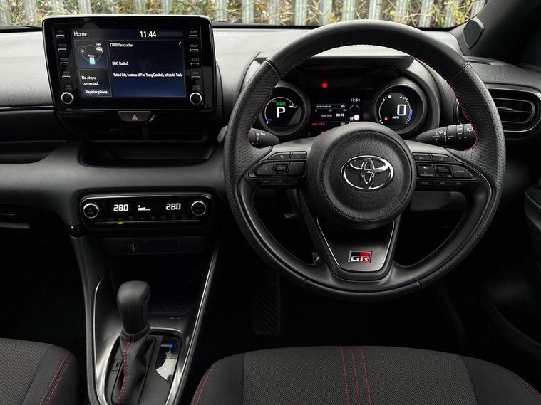 With only one previous owner and very low mileage at just 6, 975 miles, this 2023 Toyota Yaris 1.5L Petrol Hybrid is a superb example of a Euro 6 compliant vehicle. As a GR SPORT variant with GR SPORT trim, this Toyota Yaris comes with the reassurance of 12 months warranty and is Toyota manufacturer approved. The MOT is valid until March 2026. It boasts Smart Entry with Keyless Entry, Remote AC via MyT, and Dual-Zone Automatic Air Conditioning, including Climate Control. The vehicle also features Toyota Safety Sense 2, which includes Adaptive Cruise Control, and Smartphone Integration with Apple CarPlay and Android Auto.This Toyota Yaris stands out with its impressive fuel economy of 64 mpg, indicating superior efficiency compared to similar vehicles. Its low CO2 emissions also make it an environmentally conscious choice. This Yaris VVT-h GR SPORT offers a blend of style, technology, and economy, making it an ideal choice for those seeking a modern and efficient driving experience..