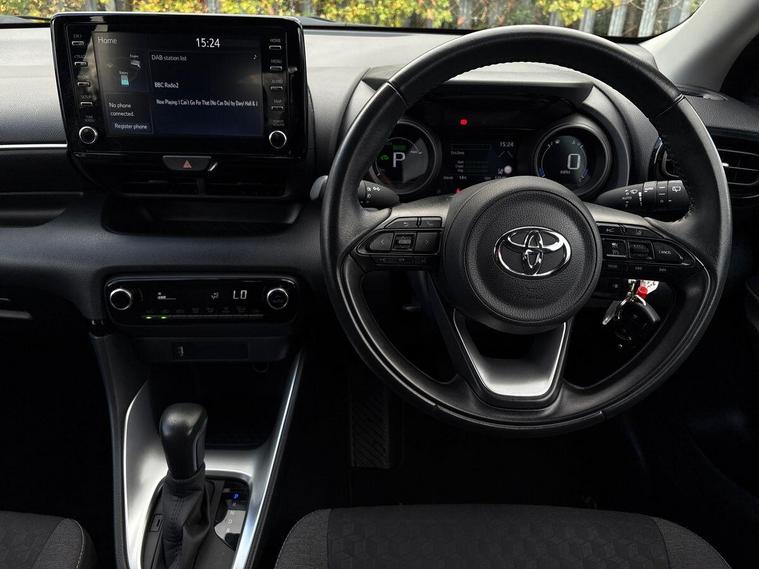 This 2022 Toyota Yaris VVT-h Design is a truly exceptional example, boasting a mere 12, 542 miles and a full service history, including its most recent service on 26th October 2024 at 4, 265 miles. As a Toyota manufacturer approved vehicle with only one owner from new, it comes with a 12 month warranty for your peace of mind. This Euro 6 compliant Yaris is powered by an efficient 1.5L Petrol Hybrid engine and features the desirable Design trim.The Yaris Design is equipped with a suite of modern features designed to enhance your driving experience. Navigate tight spaces with ease thanks to the reversing camera and parking assistance, while automatic air conditioning with climate control ensures a comfortable cabin temperature. Automatic headlights provide optimal visibility, and Bluetooth connectivity allows for seamless integration of your devices. The advanced Toyota Safety Sense 2 includes adaptive cruise control, offering a more relaxed and safer journey. With an impressive fuel economy of 69 mpg and low CO2 emissions, this Yaris represents outstanding value and efficiency compared to similar vehicles..