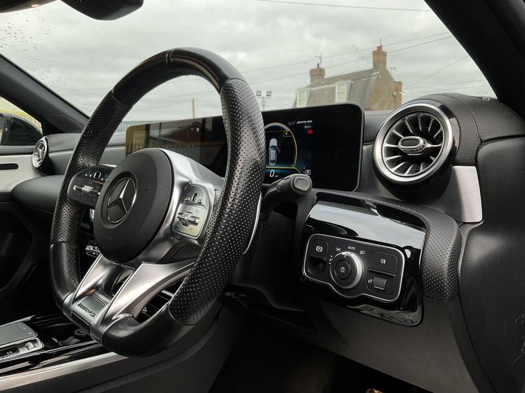 This 2019 Mercedes Benz A Class A35 AMG (Premium) is a superb example of German engineering. Finished in AMG trim and powered by a potent 2.0L petrol engine, this four wheel drive model boasts a Euro 6 emission class. Experience exhilarating performance with this A35 AMG, capable of reaching 0-62mph in a remarkable 4.8 seconds. This impressive acceleration demonstrates its superior capability compared to other vehicles in its class, offering a truly dynamic driving experience..